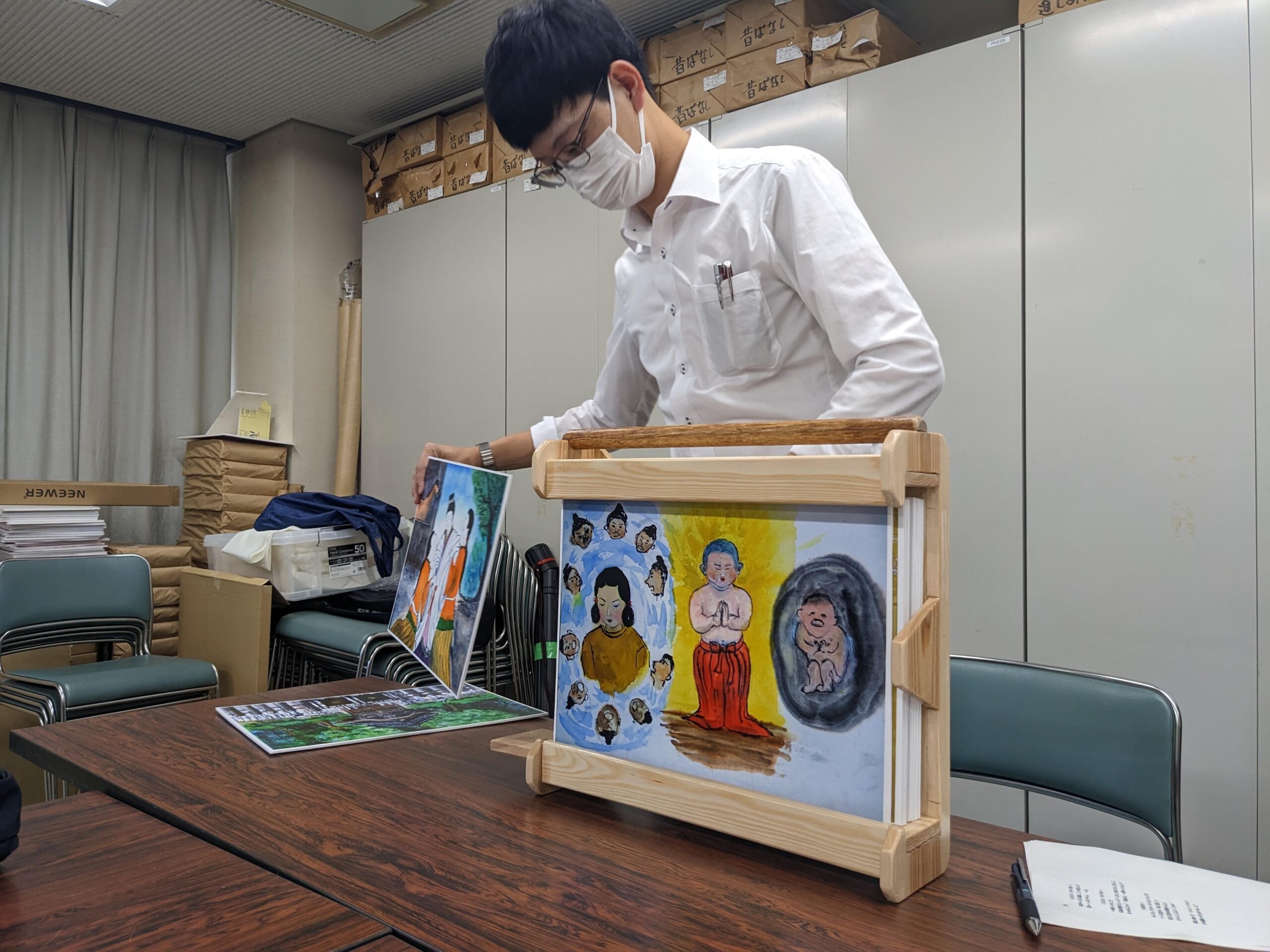 ガイドの会 会長である原さんの他、片本さん、笠原さん、そして学芸員である伊勢さん、木谷さんが手掛けた新!聖徳太子の紙芝居は、この夏からの上演です。