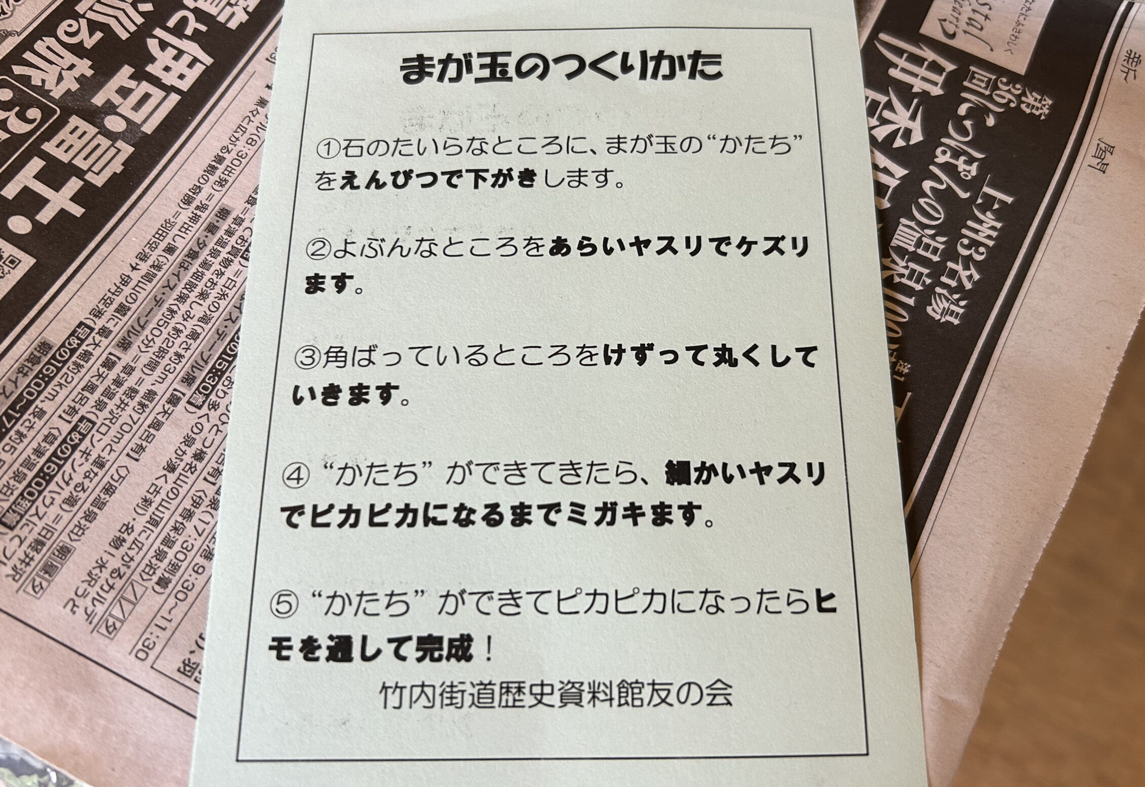太子町立竹内街道歴史資料館主催の「勾玉(まがたま)づくり体験」が行われました。