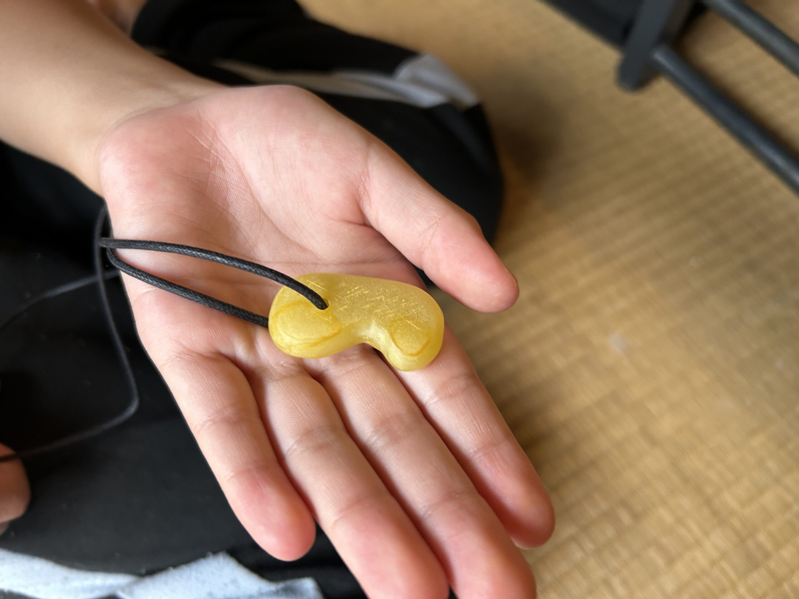 勾玉づくり体験では、ひとつの石から勾玉の形を削り出し、実際にネックレスにするまでを体験できます。
