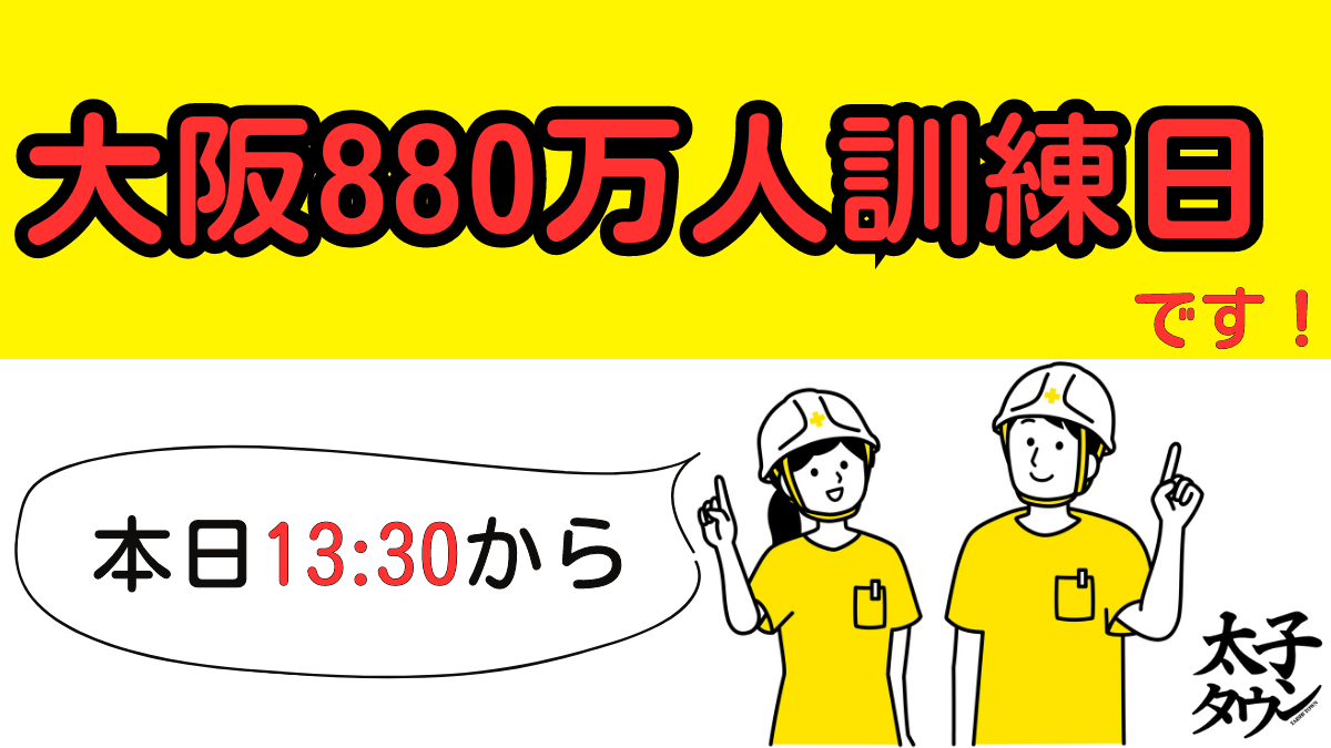 本日令和5年9月1日13:30に、「大阪880万人訓練日」という防災訓練が行われます!。