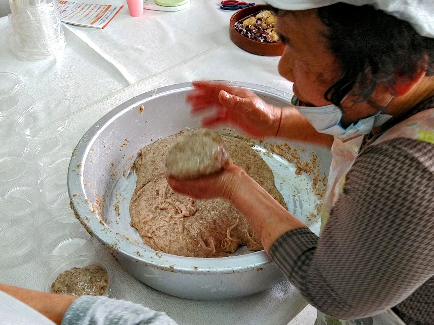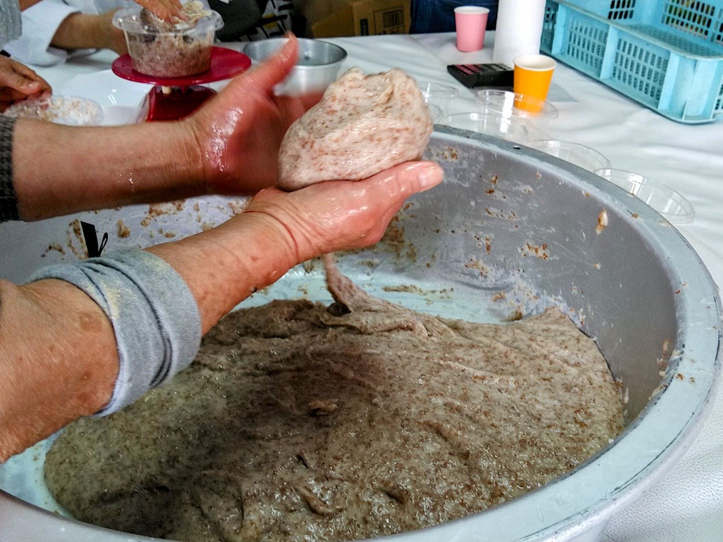 大阪府太子町でJAの生活改善クラブの方々が「あかねこ餅」をつくっている現場を見学させていただきました。