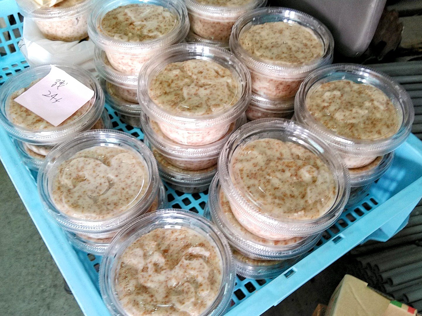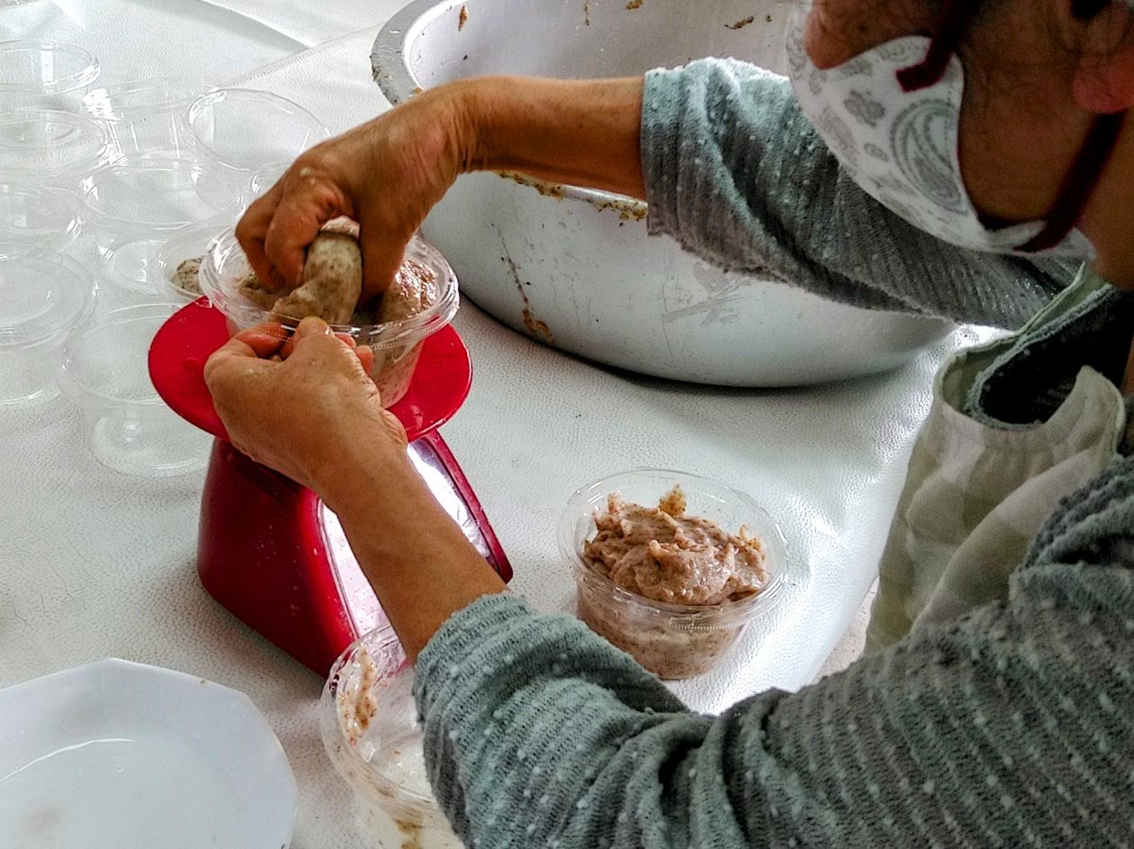 あかねこ餅が搗きあがると、みなさんさっと集まってパックに小分けしてゆきます。
