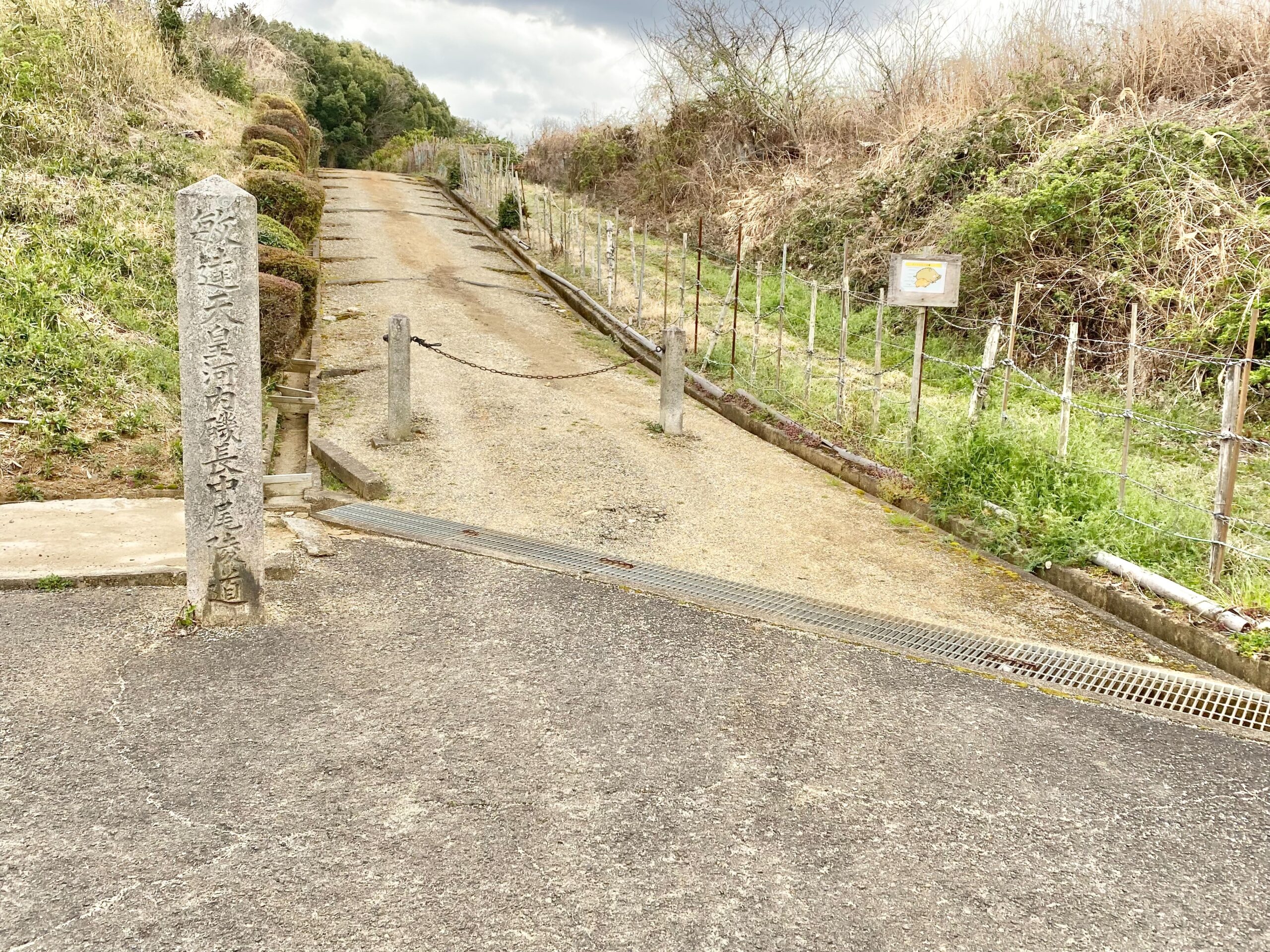 この敏達天皇陵は細く続く石張りの道を越えた先にあります。
