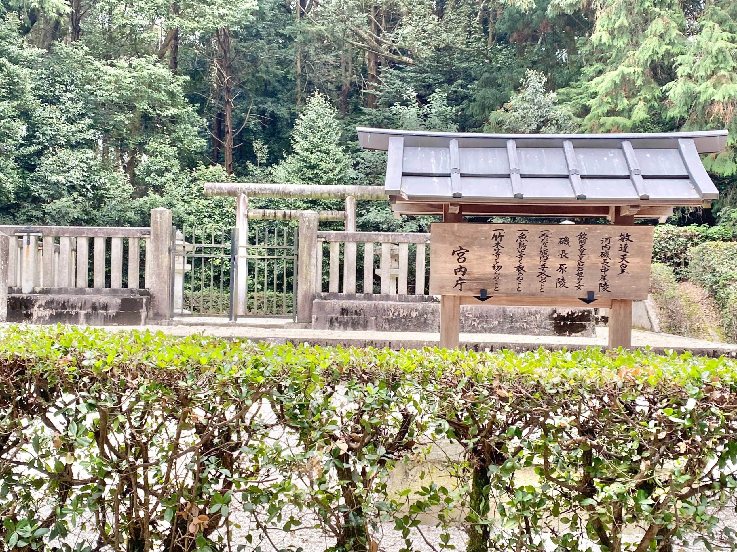 それを裏付けるように大阪府太子町にある磯長谷古墳群(しながたにこふんぐん)のなかでもこの敏達天皇陵だけが前方後円墳であり、その後にできた天皇陵はどれも異なる形をしています。