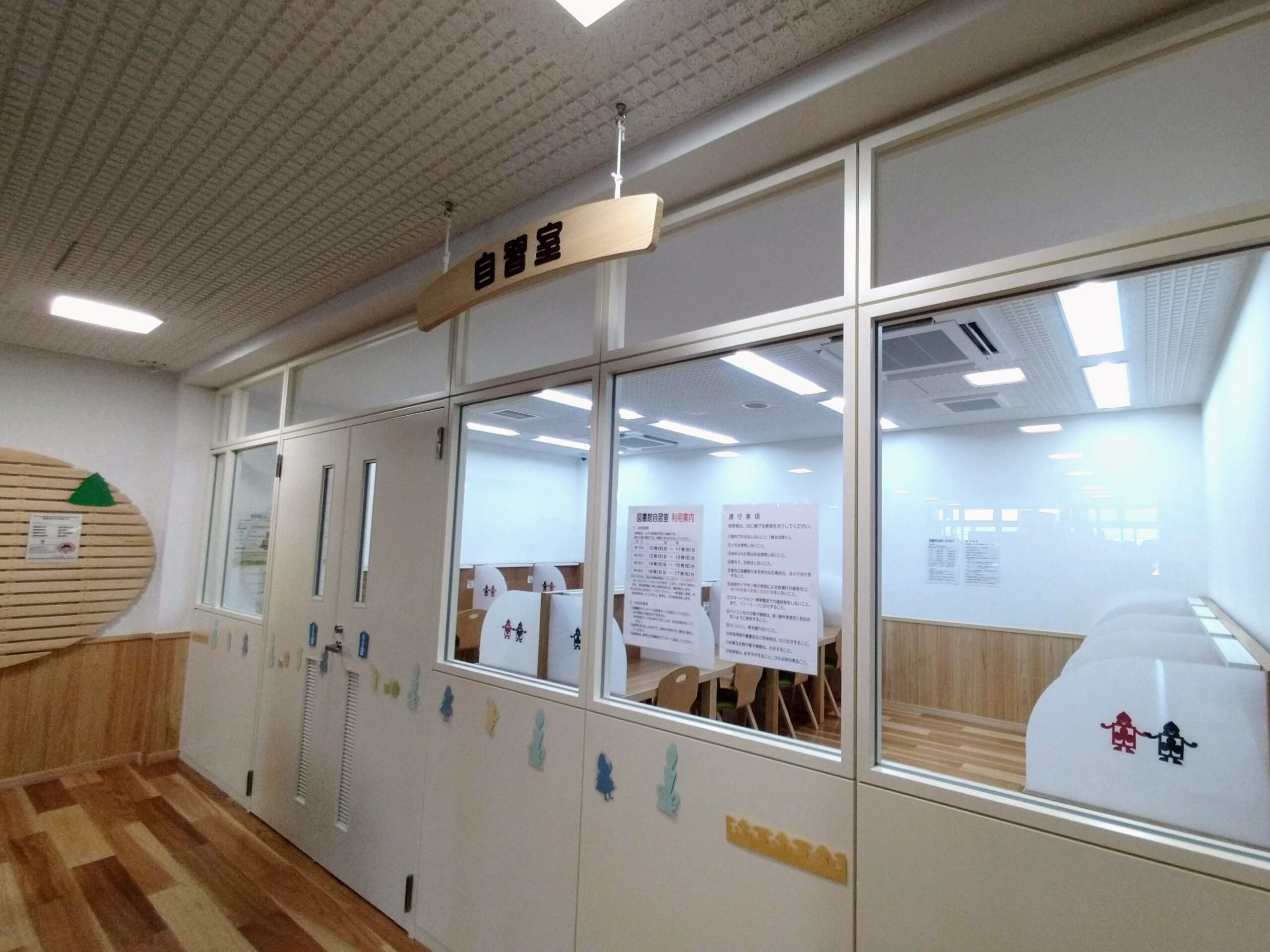 新しい図書館には自習室という学習場所が16席作られました。1席ずつコンセントも設置されています。