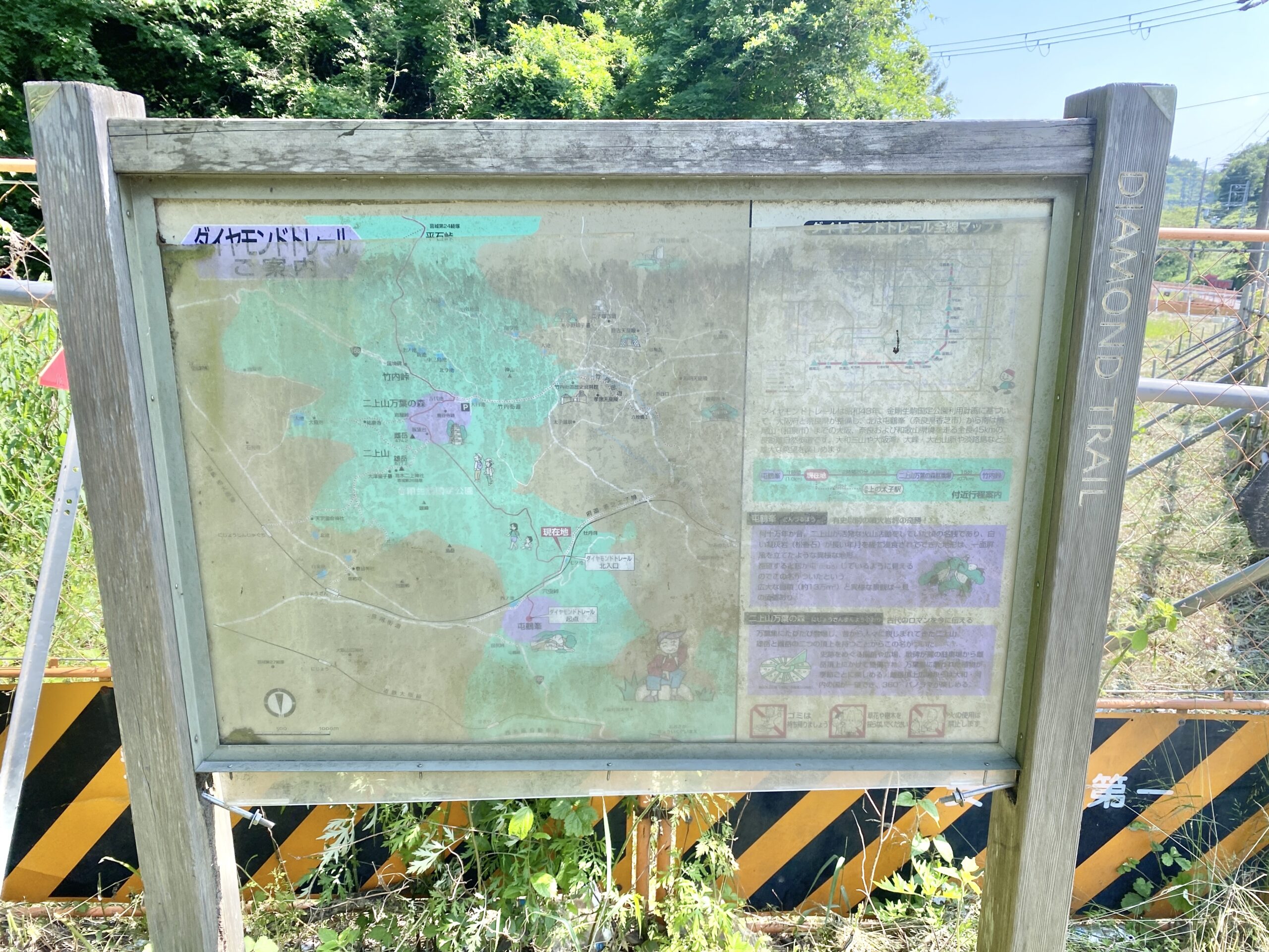 ダイヤモンドトレールとは、1970年に大阪府によって整備された大阪・奈良・和歌山県境の金剛・葛城山系の稜線を縦走する全長約45キロメートルの長距離自然歩道です。