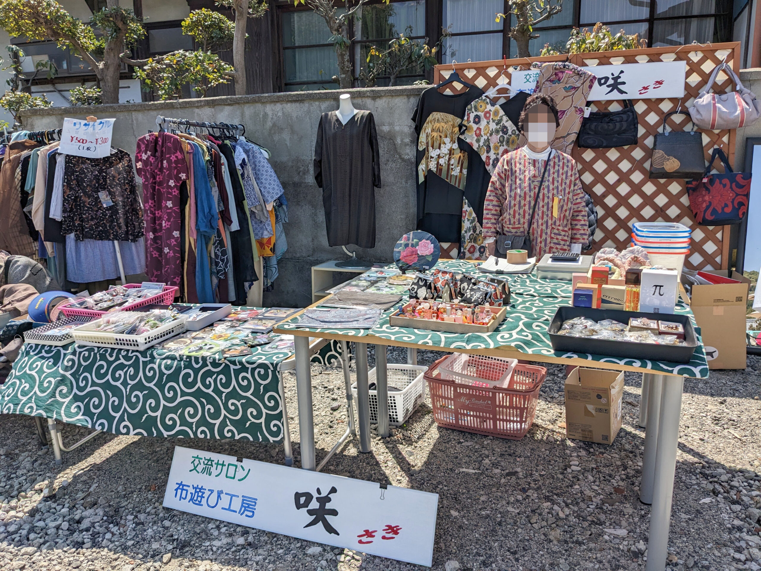 場所は西方院の駐車場広場、主催は布遊び工房「咲」さんです。