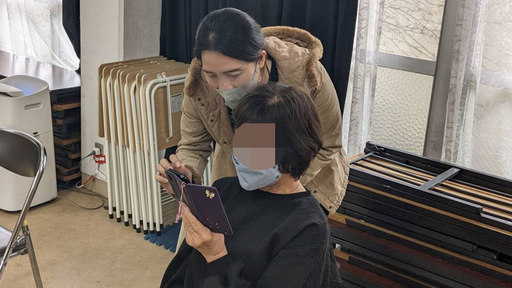 交流サロン「にじいろはうす」のスマホ講座の様子
