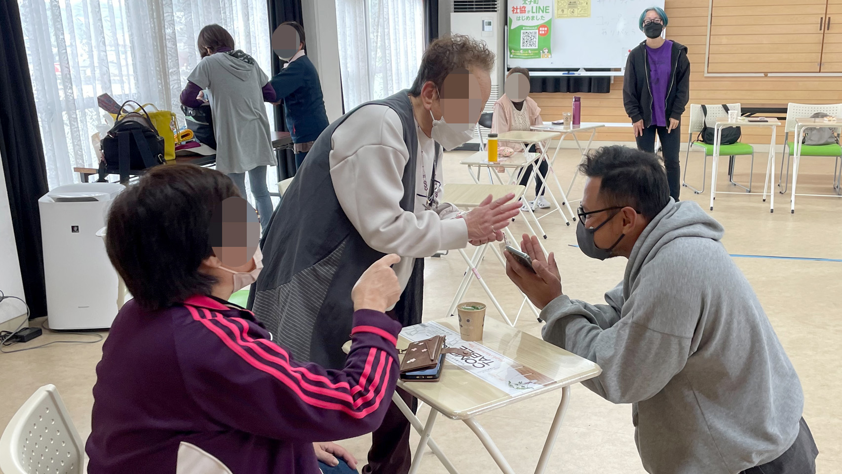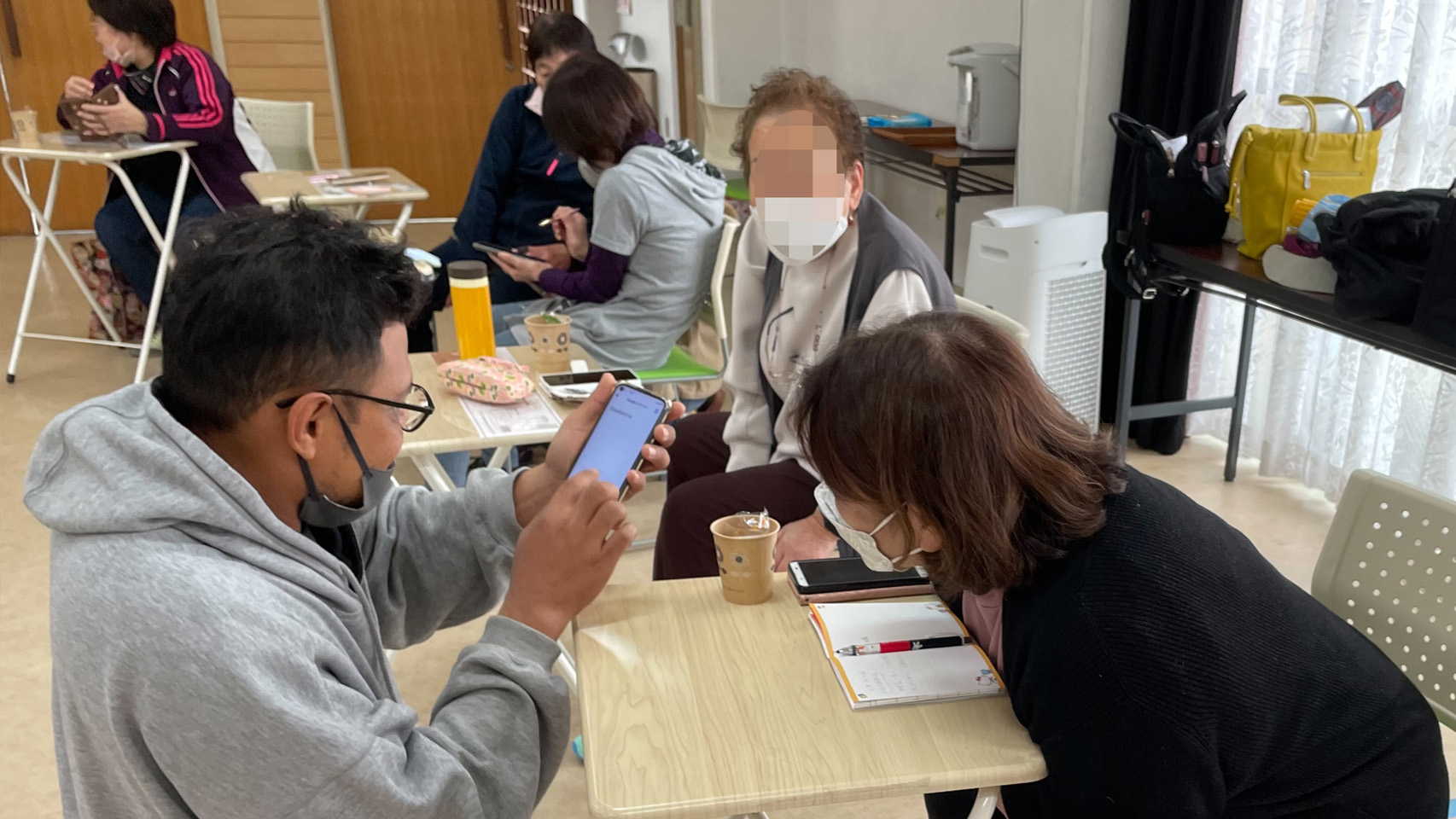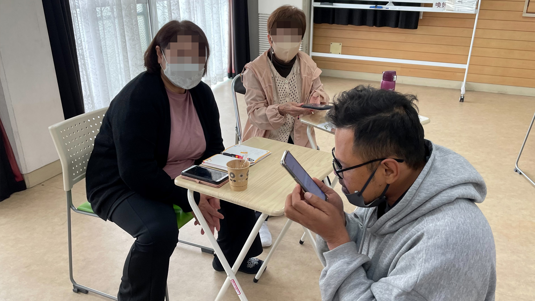 続いては別の日、交流サロン「にじいろはうす」の方々ともスマホのGoogle翻訳アプリを利用して会話をしてみました。