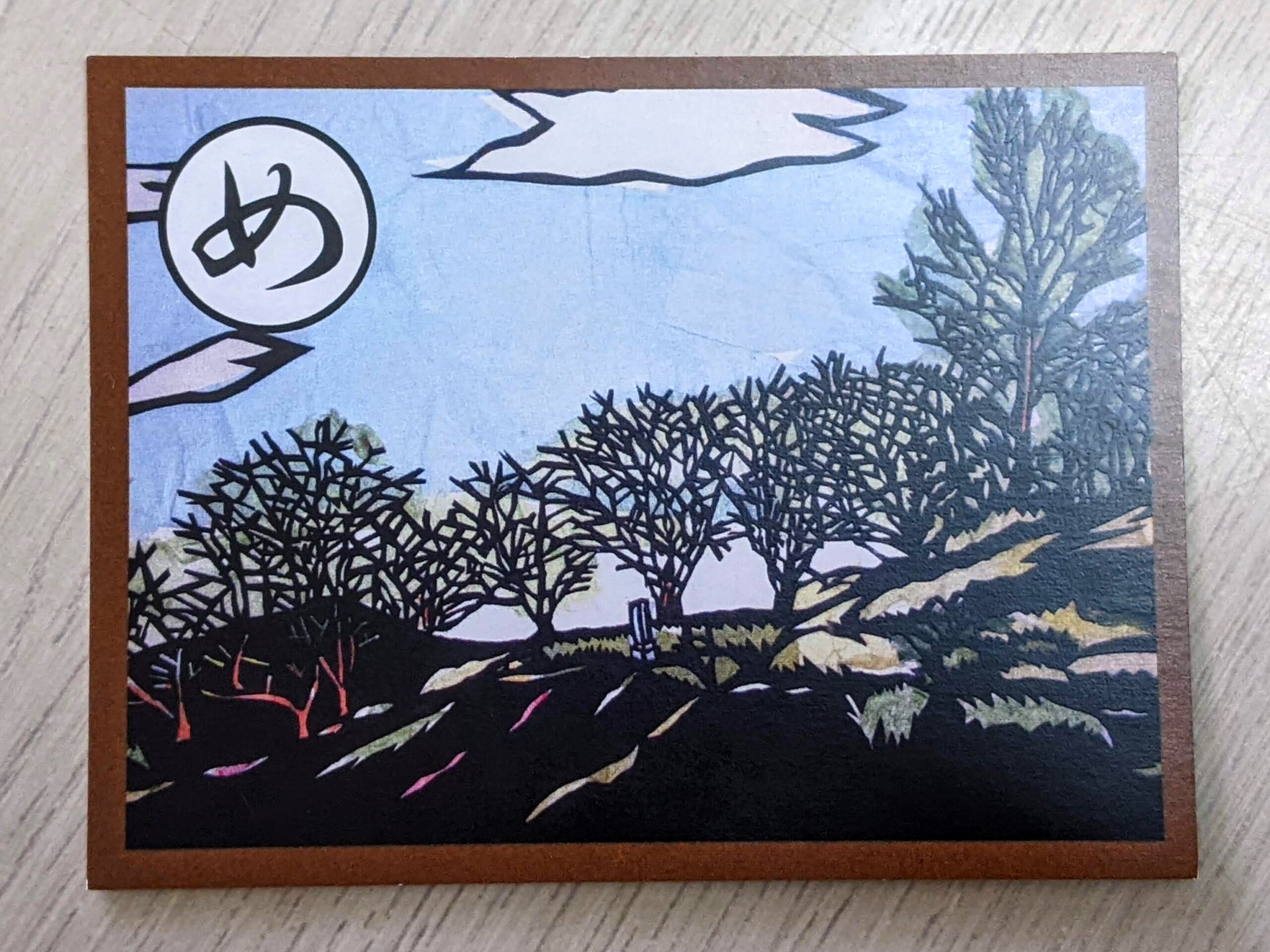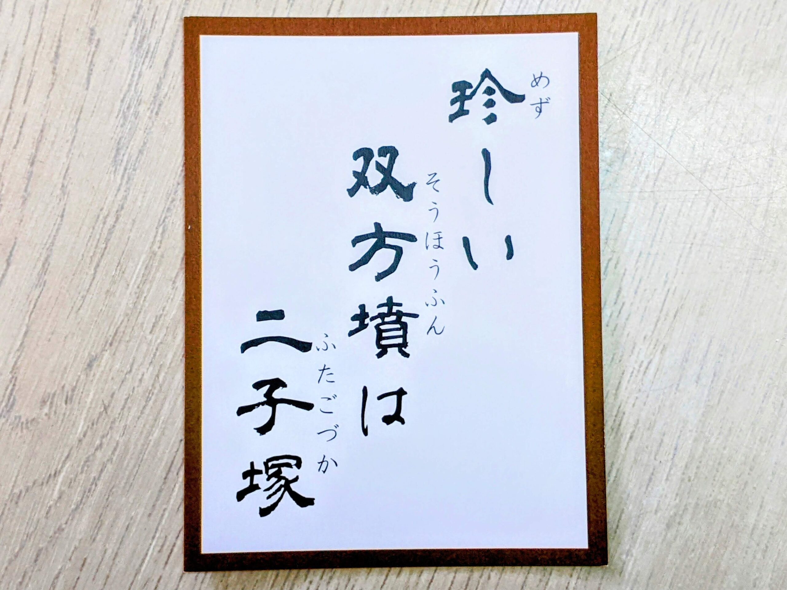 絵札には、小高い丘の上に二子塚の墳丘全景が見えます。