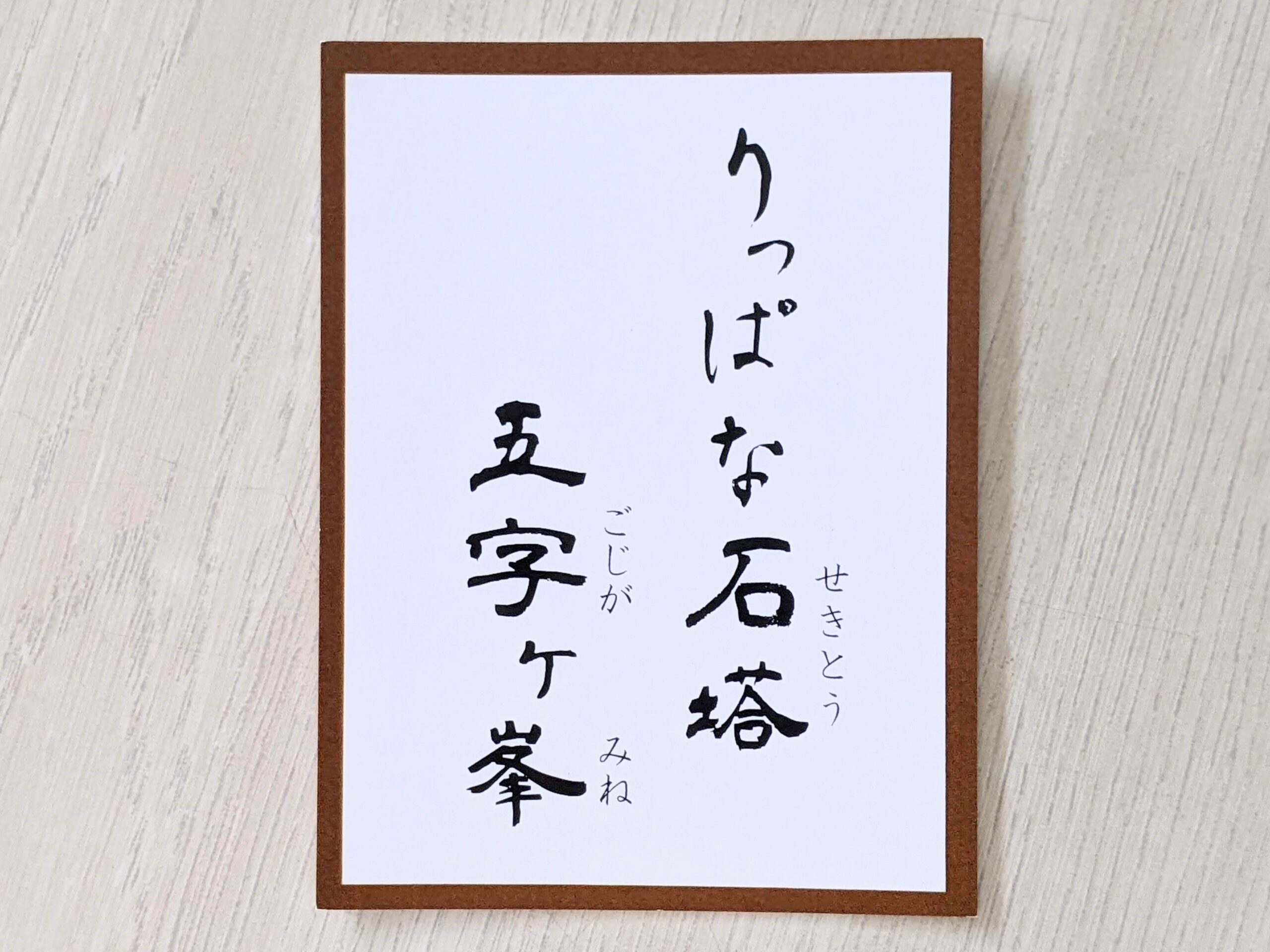 まず、絵札には、五字ヶ峯山頂にある宝篋印塔(ほうきょういんとう)が描かれています。