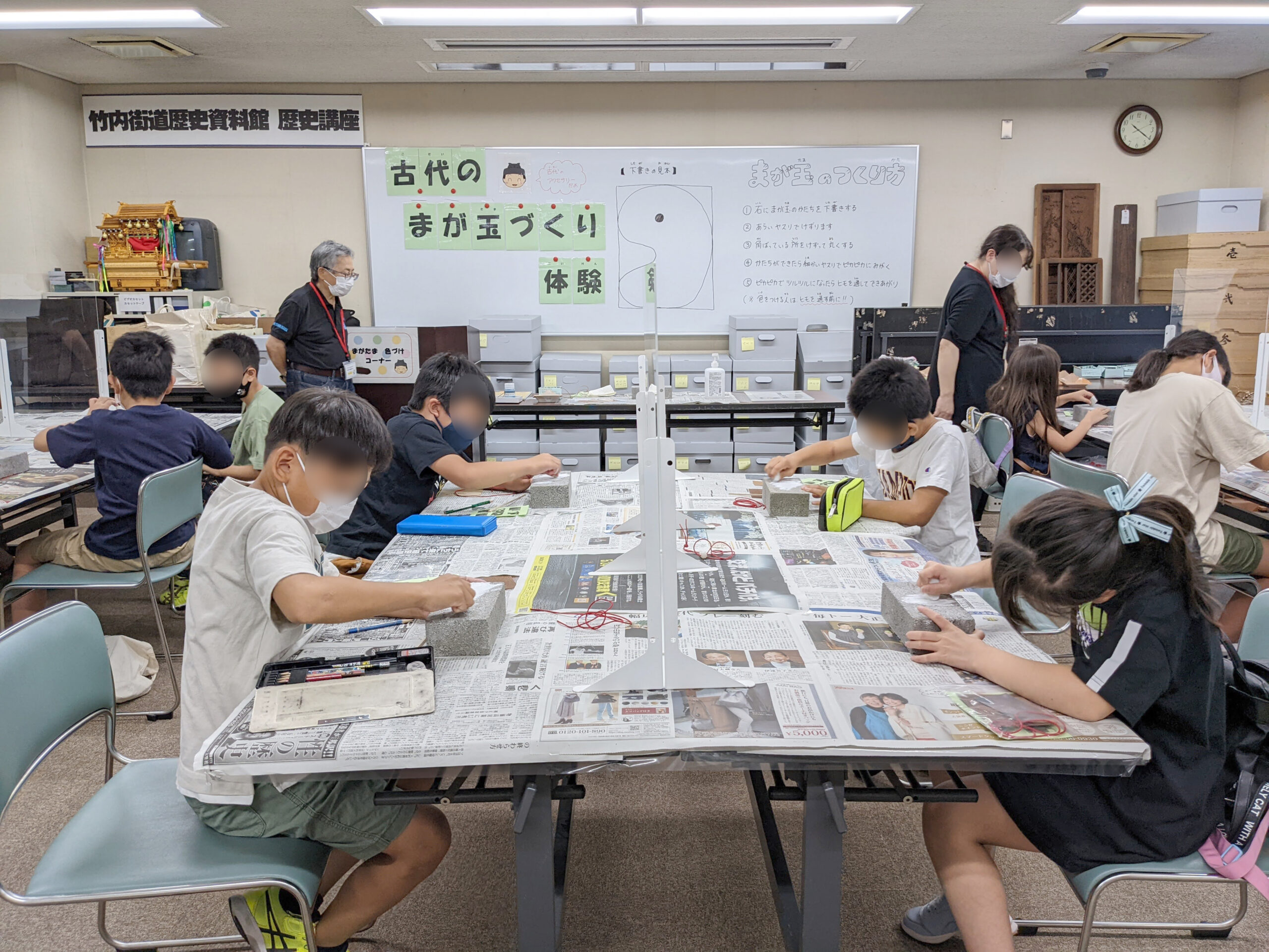 また定期的に学芸員や外部からの講師がおこなう講座や講演会、勾玉づくり体験もあり子ども達に人気のイベントの一つです。