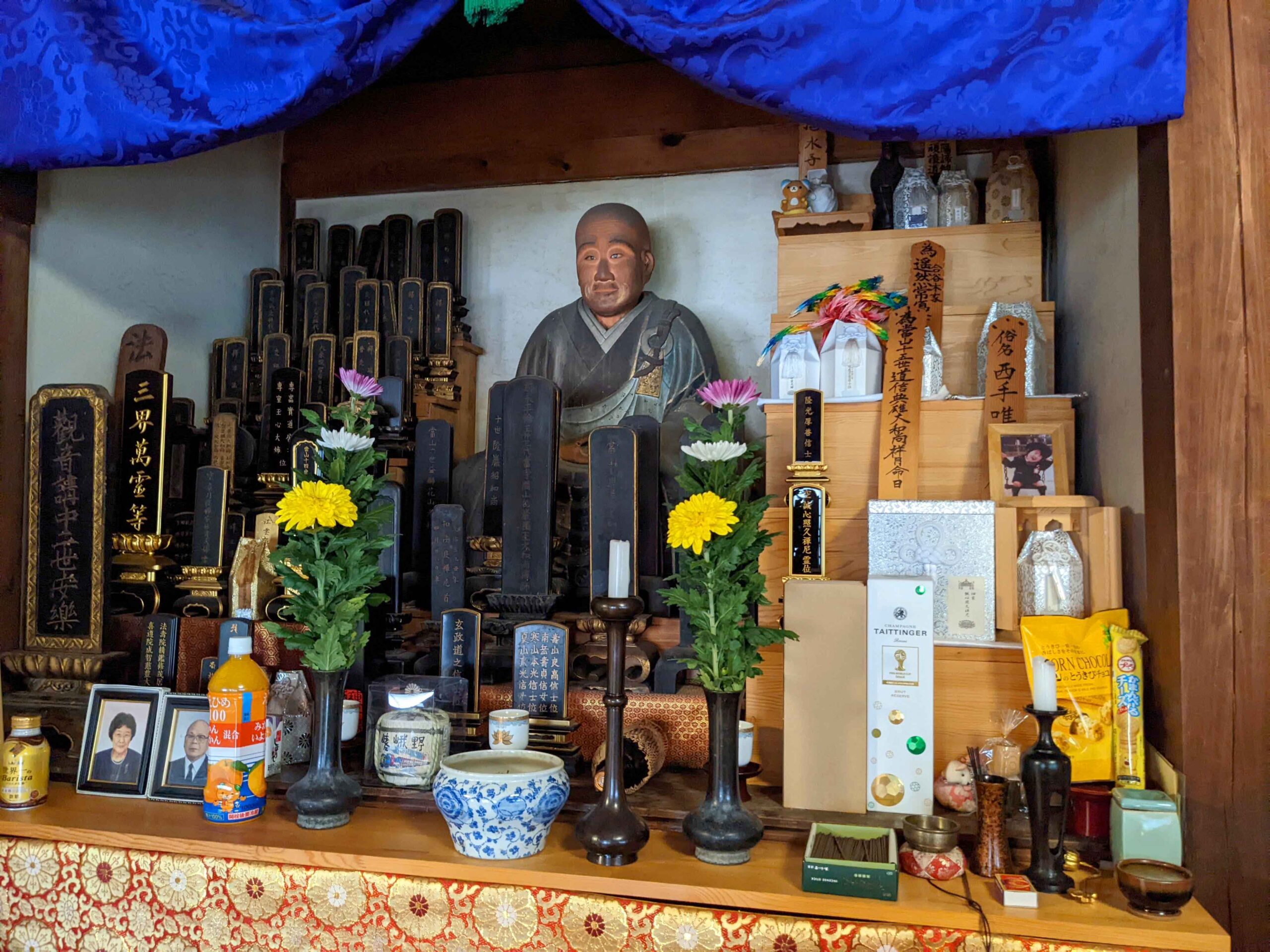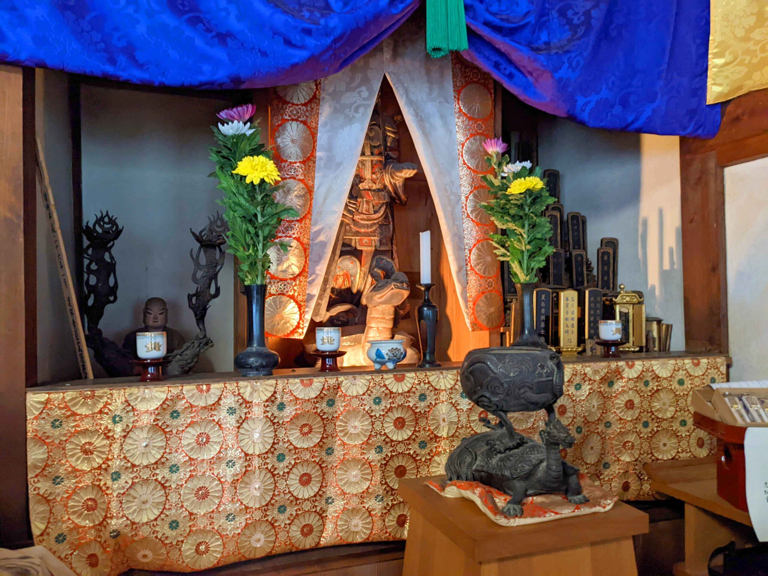 ご本尊のほかに「北辰妙見大菩薩」像(妙見信仰の象徴)と妙見寺が曹洞宗に改宗した際の開祖である「輪王寺(りんのうじ)」(仙台にある菩提寺)の二十三代目住職像が安置されています。