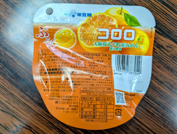 「コロロ 大阪太子町みかん味」は、果汁感たっぷりで太子町のみかんの美味しさを手軽に楽しめるグミです。