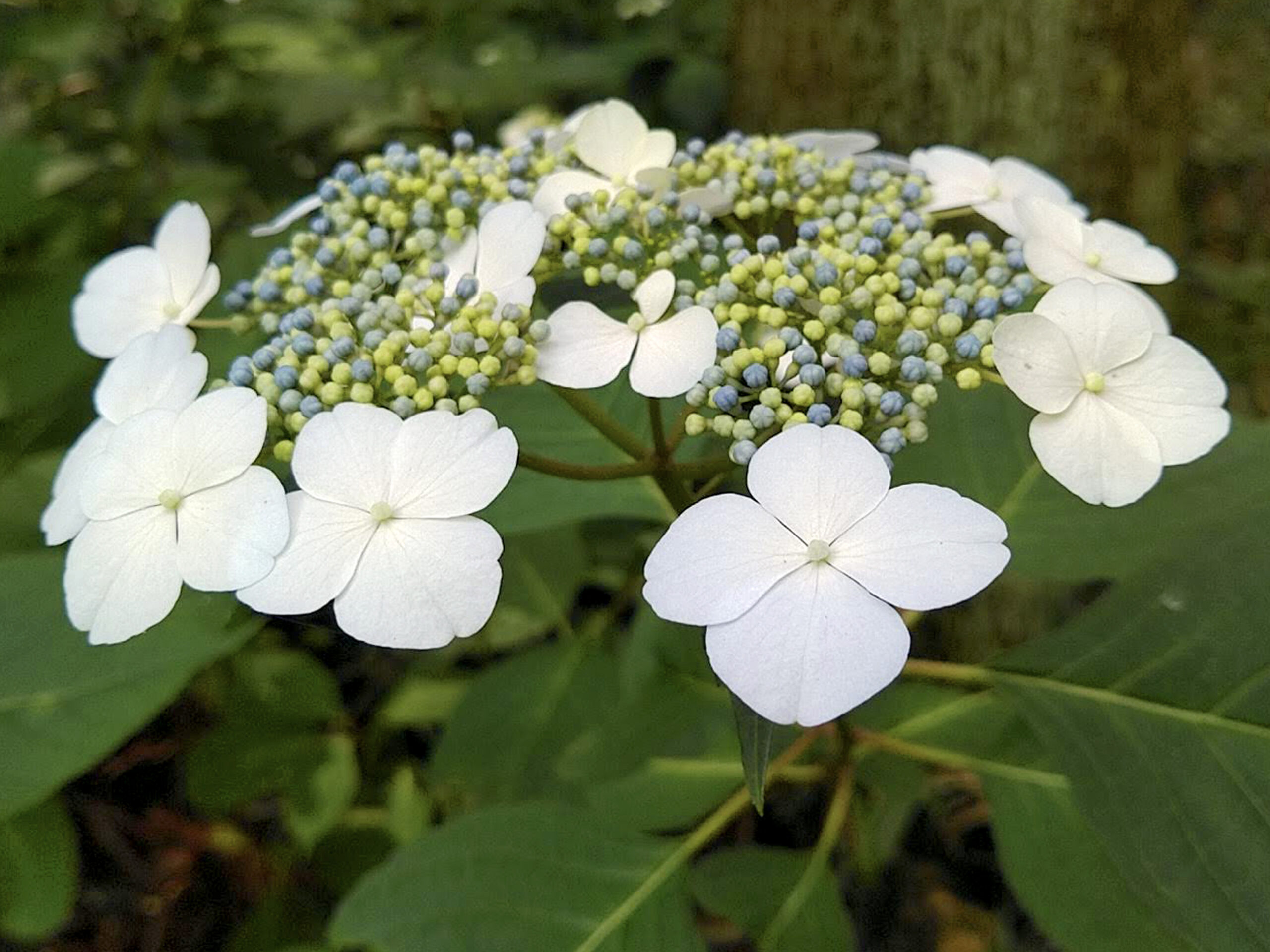 目当ての紫陽花は登山口からすでにほころび始めており、道のそこかしこで花を咲かせています。