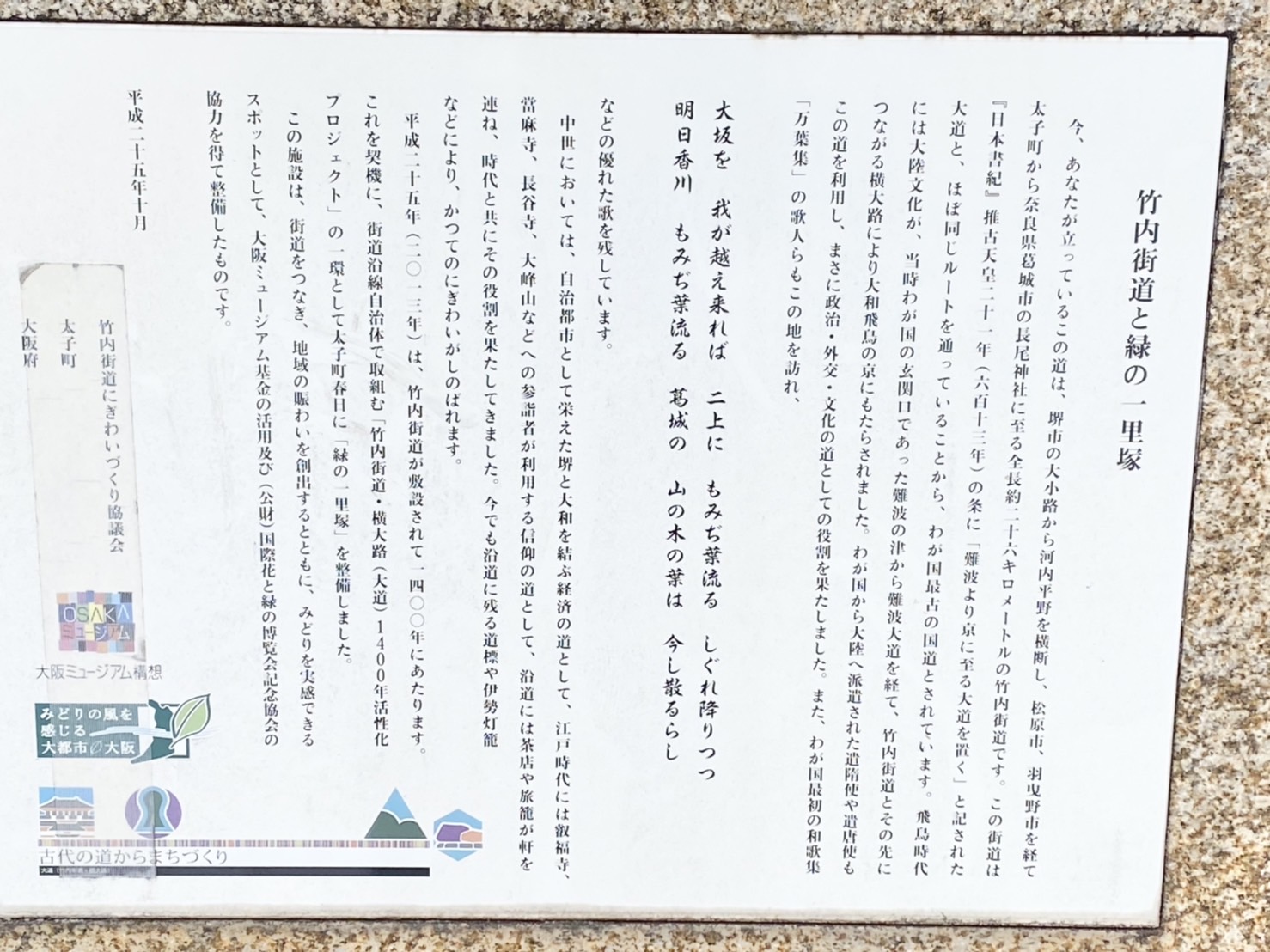 竹内街道(たけのうちかいどう)沿いを歩いていると木の下に案内板がある光景を目にしたことがあるかもしれません。