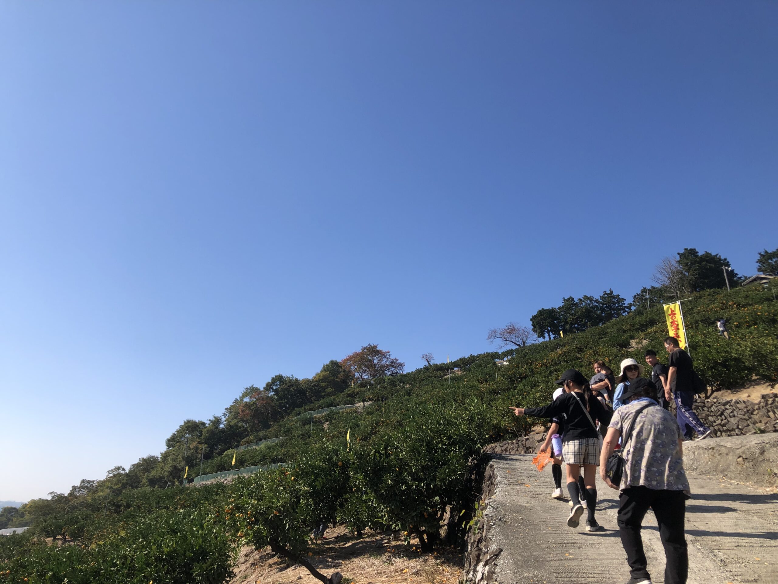 11月上旬の連休に行ったのですが、みかん畑は直射日光を遮るものがないので、子どもは特に脱水や熱中症に気をつけて楽しみましょう!