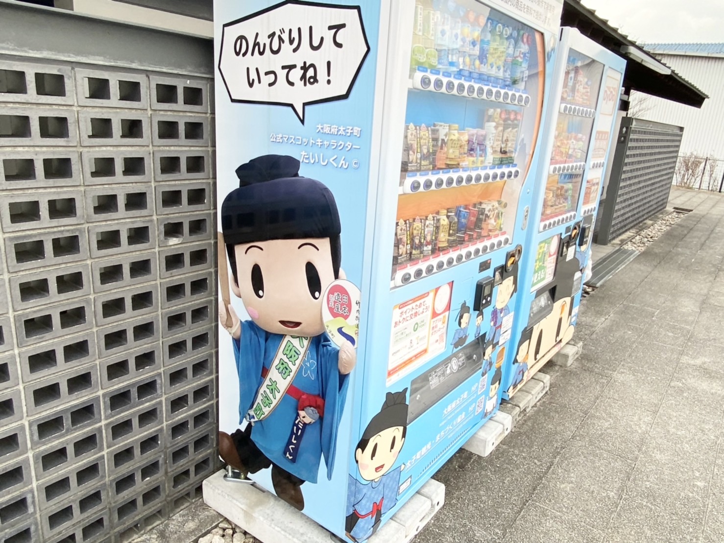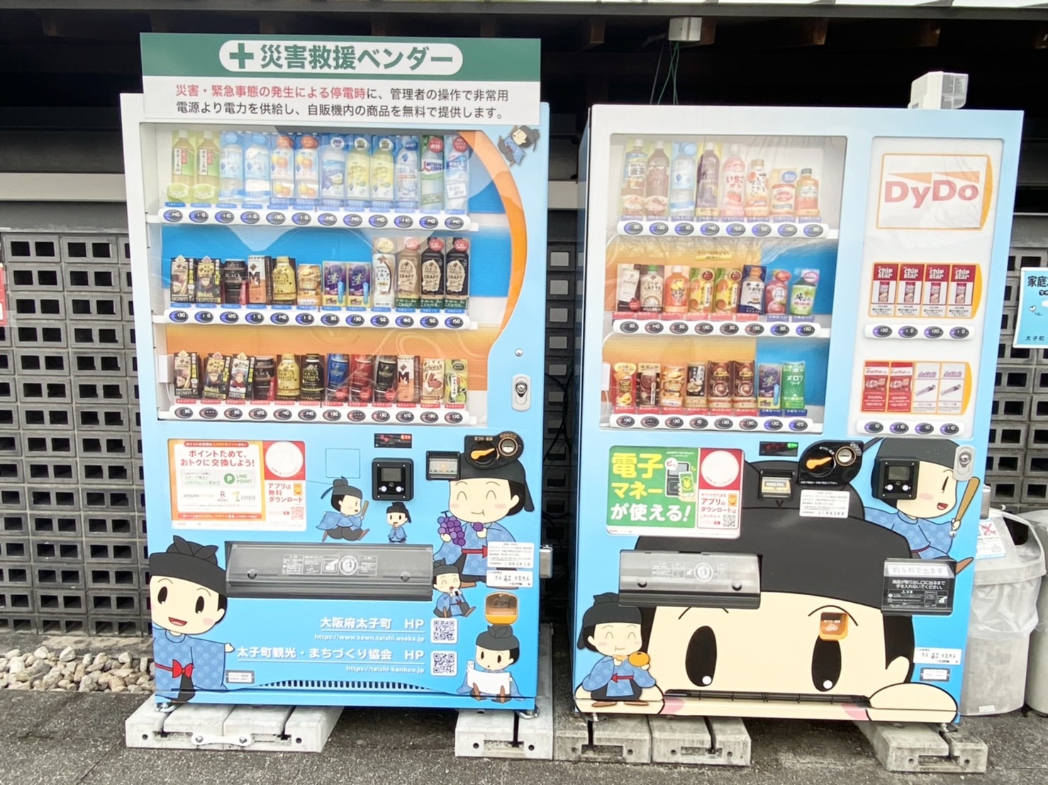 たいしくんのラッピング自販機もあり、こちらは災害時に飲み物を受け取ることができる災害用ベンダーとしての機能も備えているんですよ。
