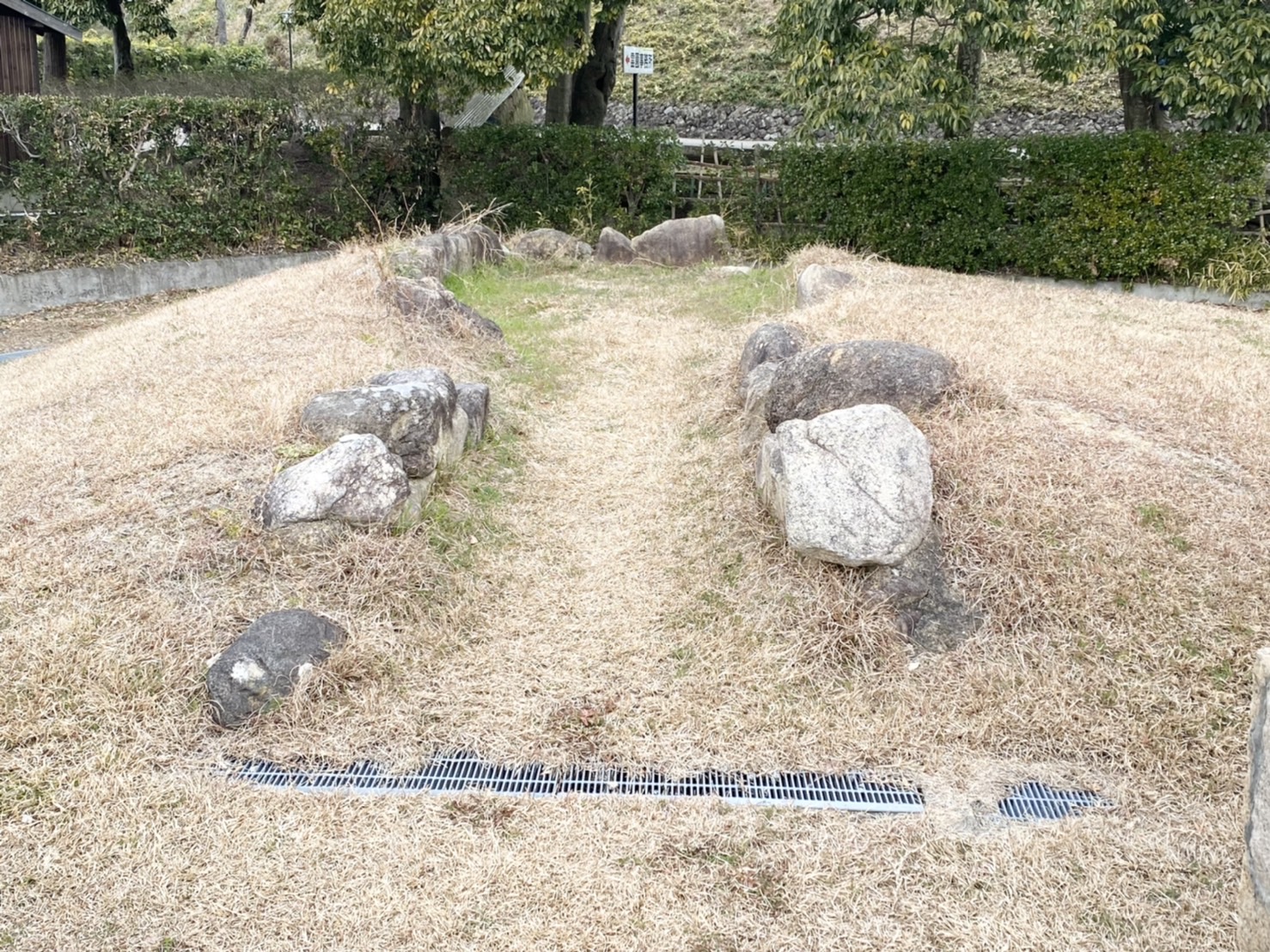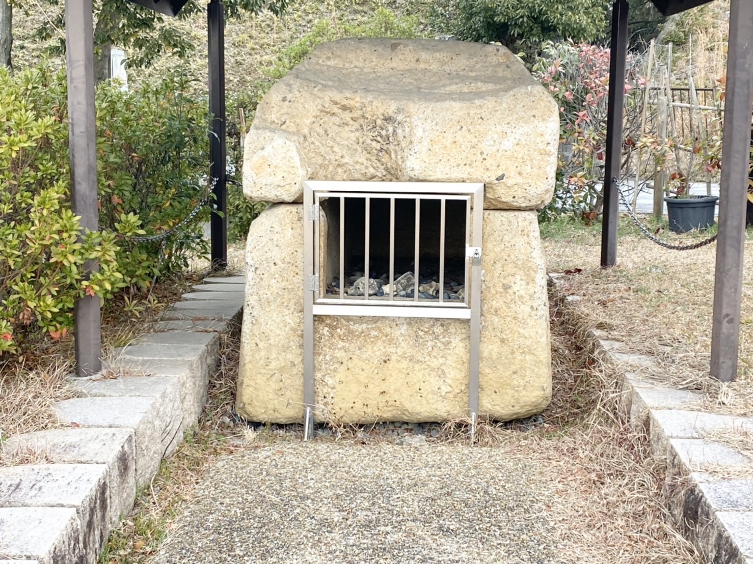 お墓の墳丘は亡くなってしまっていましたが、残っていた石室を和みの広場に移して復元しています。