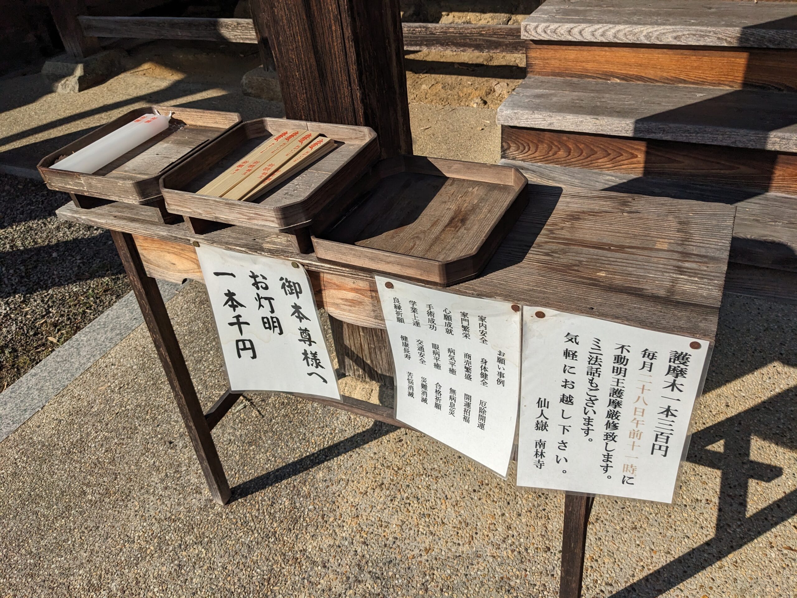 南林寺の護摩木は1本300円なので、必要な本数分の金額をお賽銭箱へ入れてください。