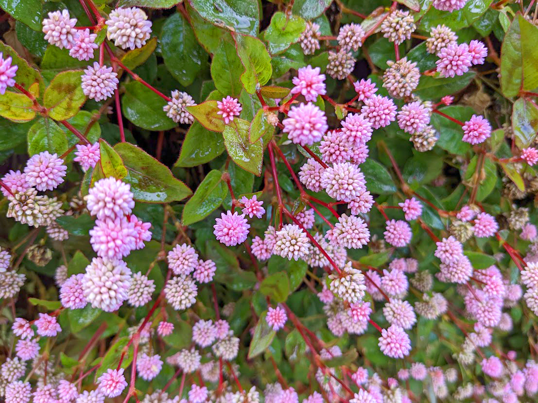 ヒメツルソバという名前から「お蕎麦」を想像してしまいますが、見た目はピンク色の可愛いポンポンがついたようなお花ですよ。