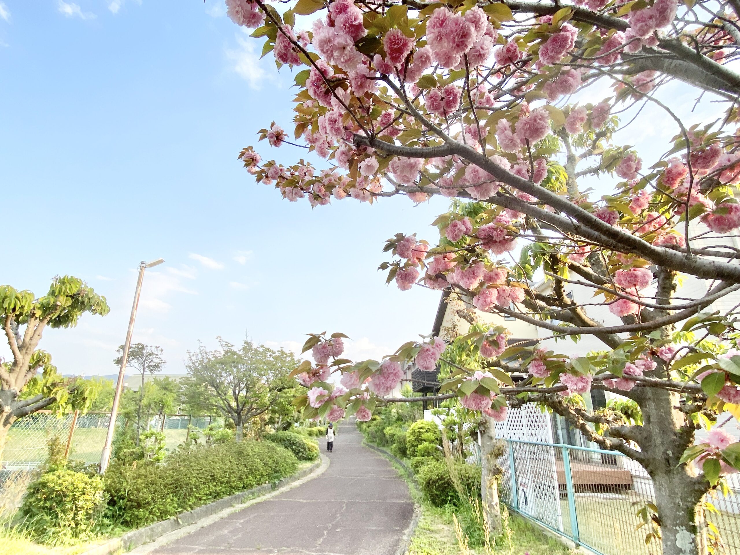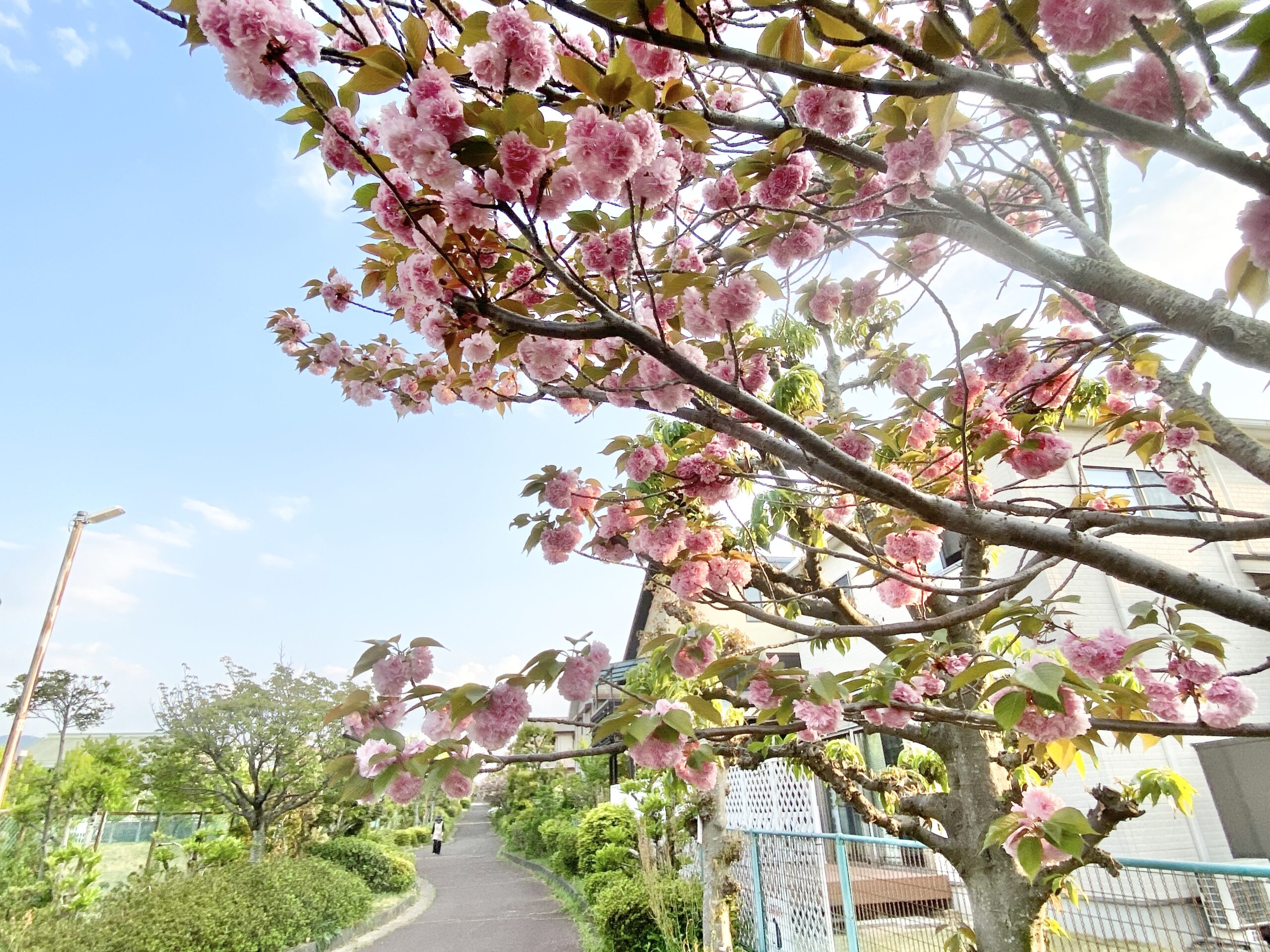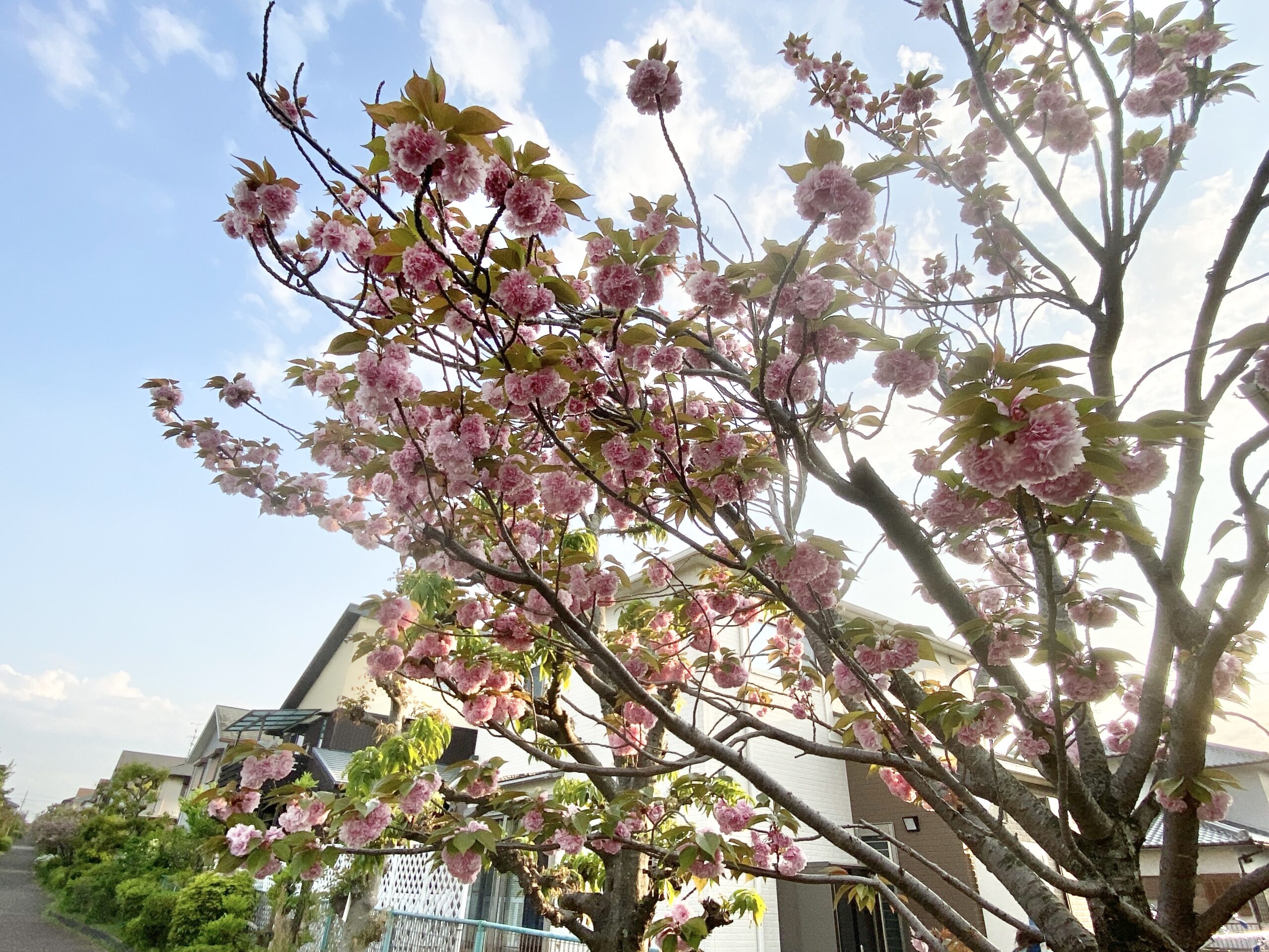 一般的な桜「ソメイヨシノ」が散った後に咲き始めるため、桜としては遅咲きです。