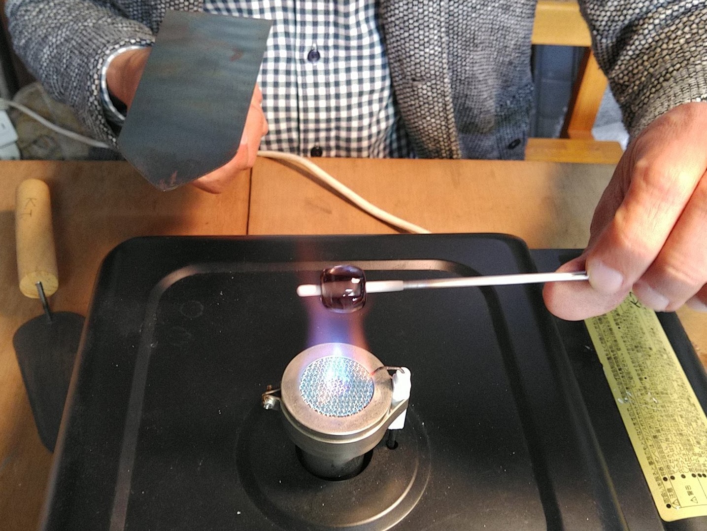 先生の丁寧な指導の下、ガラスを溶かして形を整え、そして模様を作って固めるという工程をじっくり体験できました。