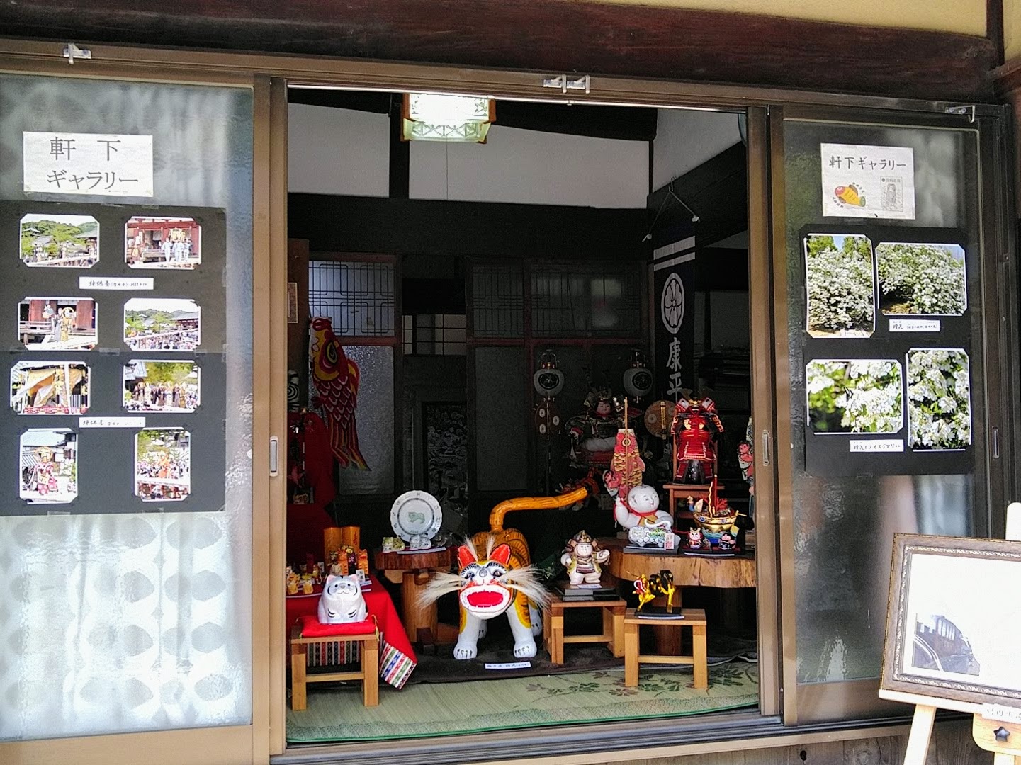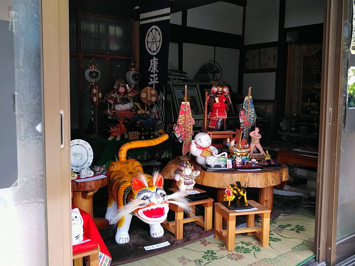 スペースの開放は不定期ですが、5月はこどもの日にちなんだ飾りで五月人形や縁起物のトラの置物などを見ることが出来ました。四季や行事ごとに変えていて、3月はひな祭りにまつわる飾り、七夕は笹の葉など、趣向を凝らして展示をしているそうです。