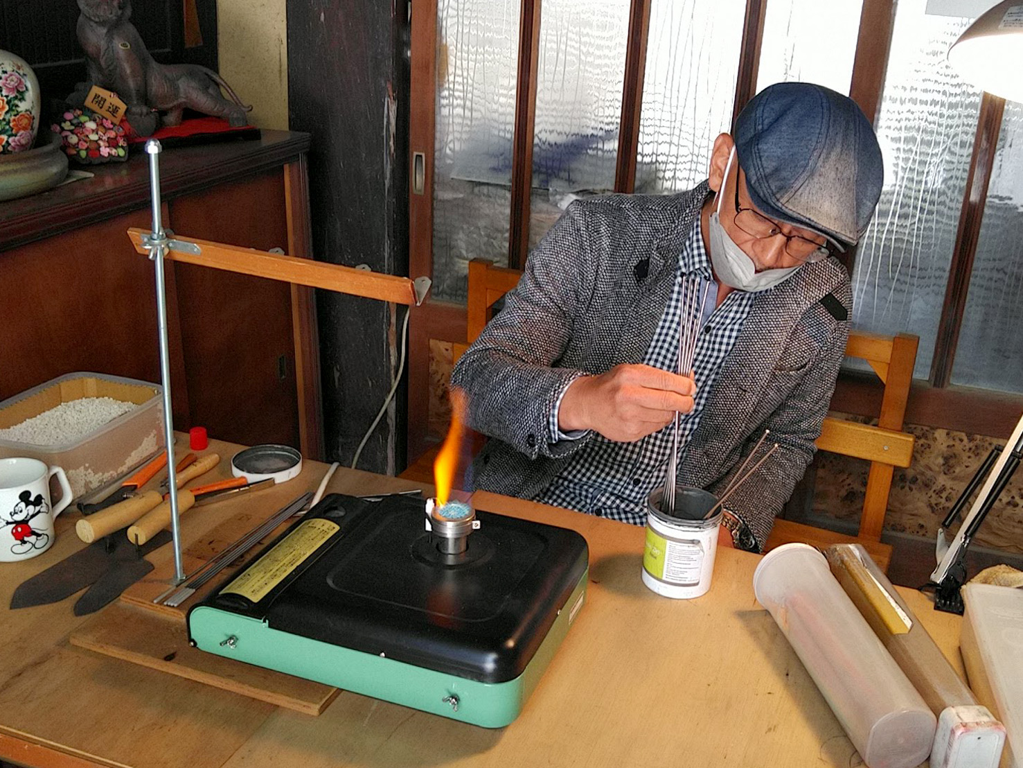 崎山高輝(さきやま たかてる)先生による、とんぼ玉制作体験です。