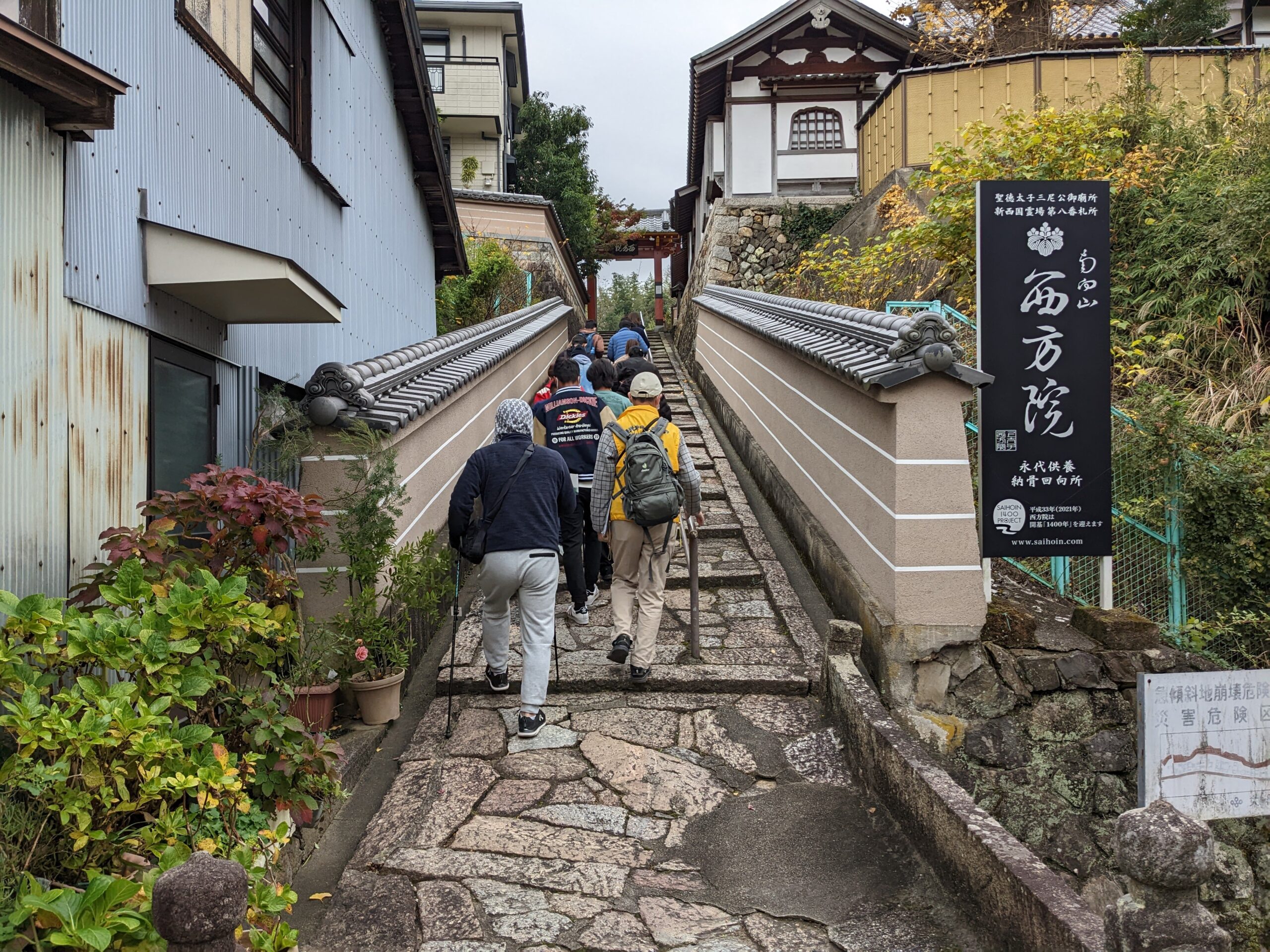 竹内街道では、最古の街道であることを聞きながら、正泉寺(しょうせんじ)の前を通り、軒下ギャラリーの秋の写真を横に見つつ進んでいきます。