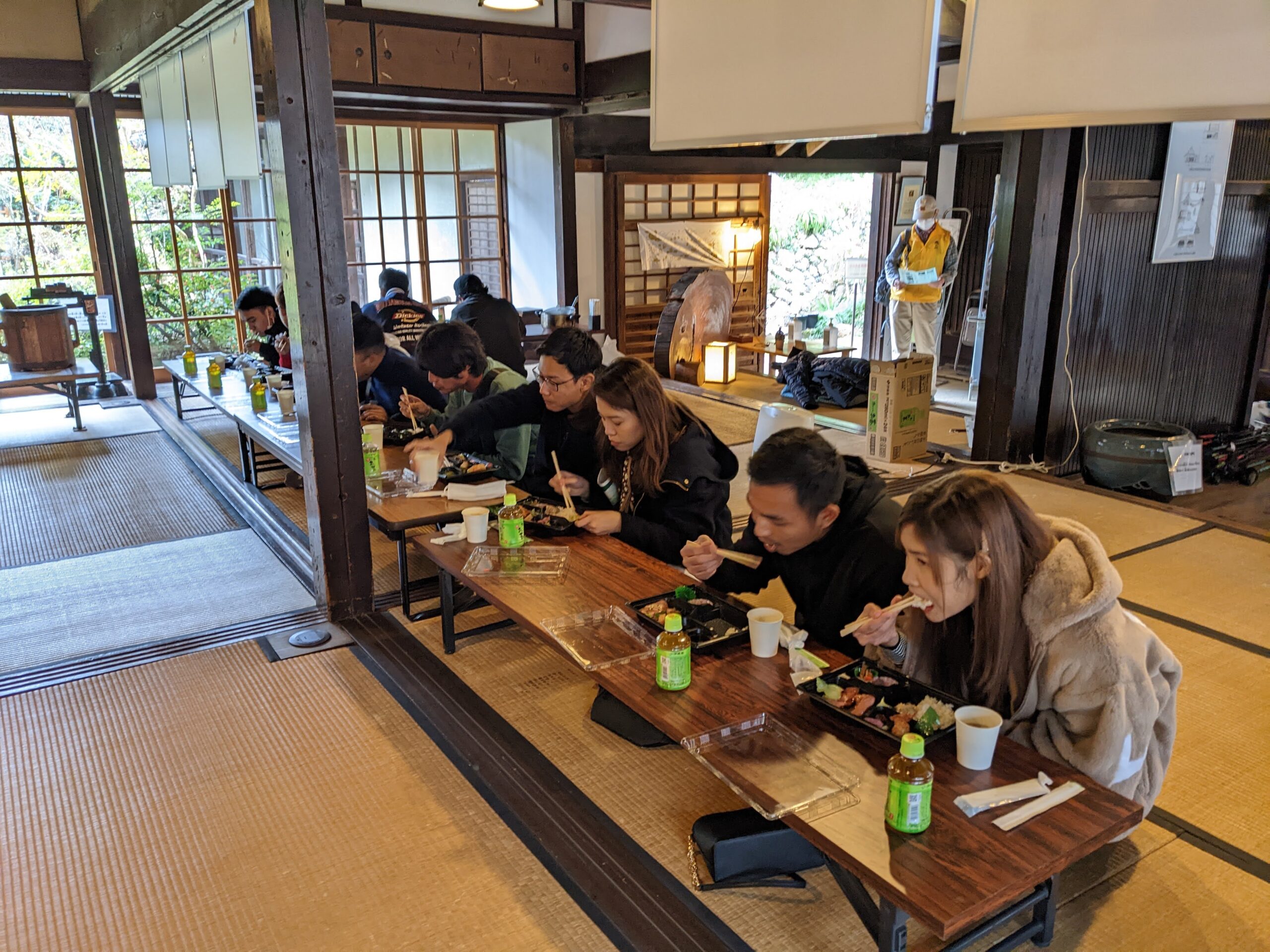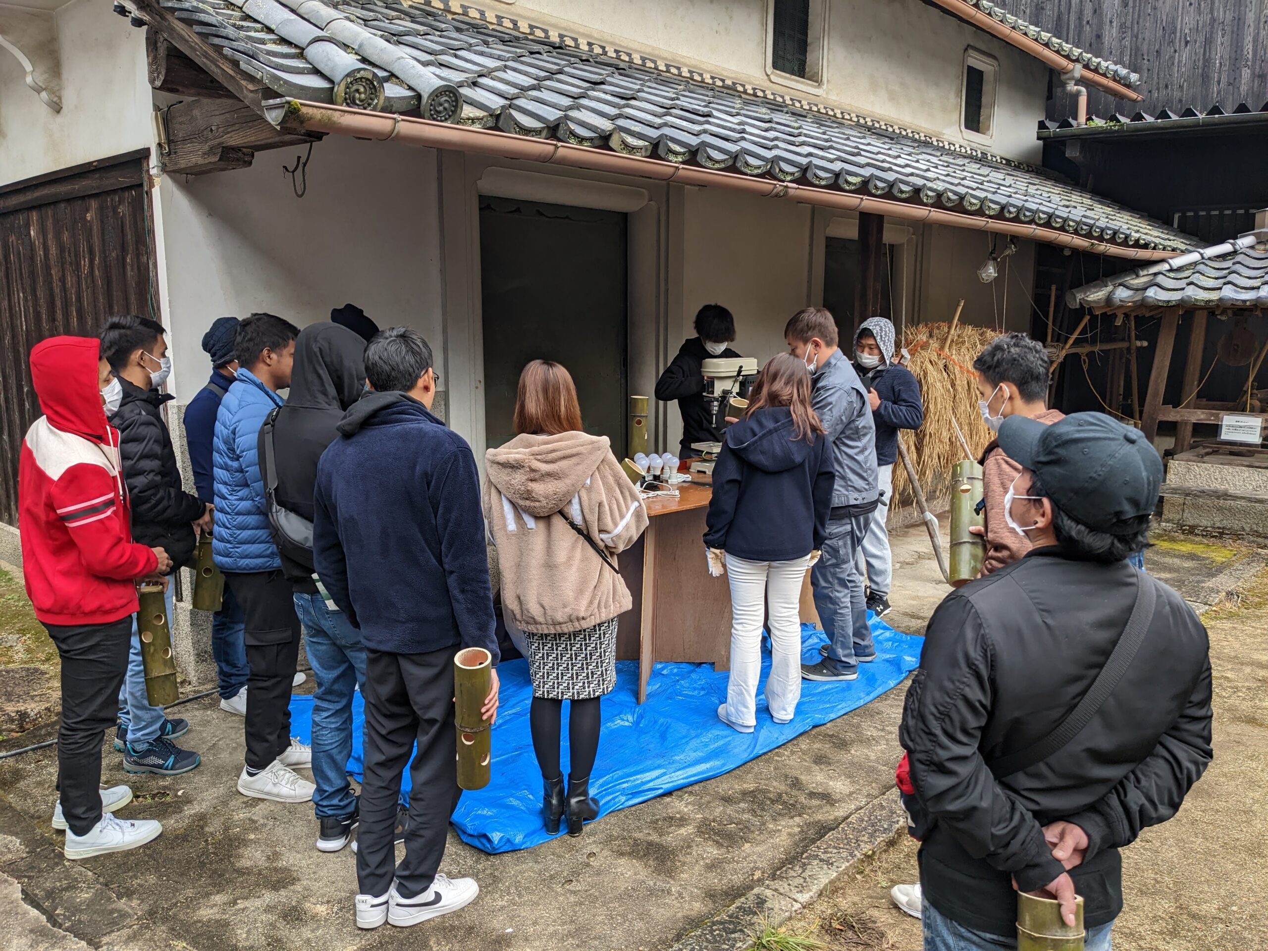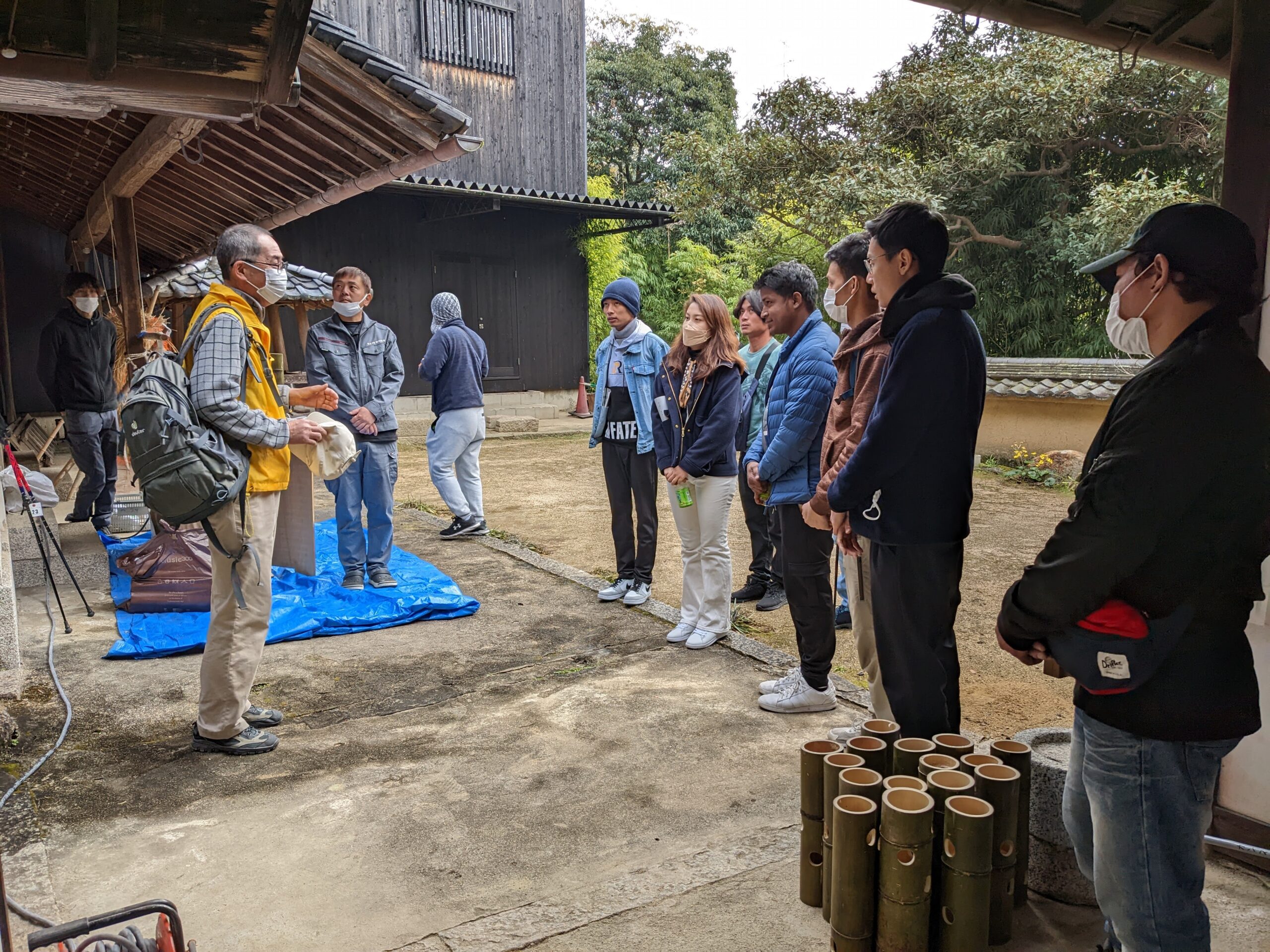 大道旧山本家住宅では主屋で昼食、中庭にて竹照明のワークショップを体験していただきました。