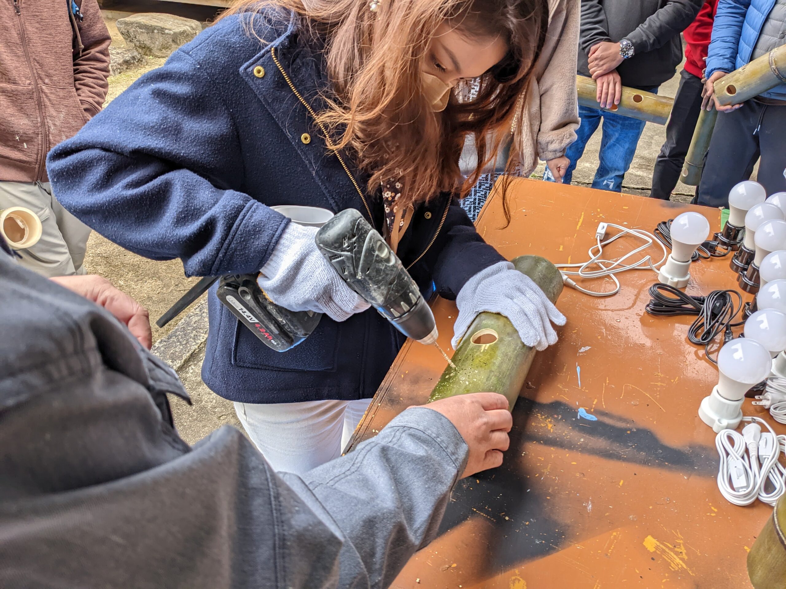 竹照明のワークショップは昨今の日本国内で問題になっている「放置竹林」の解決策のひとつとして行われているものです。