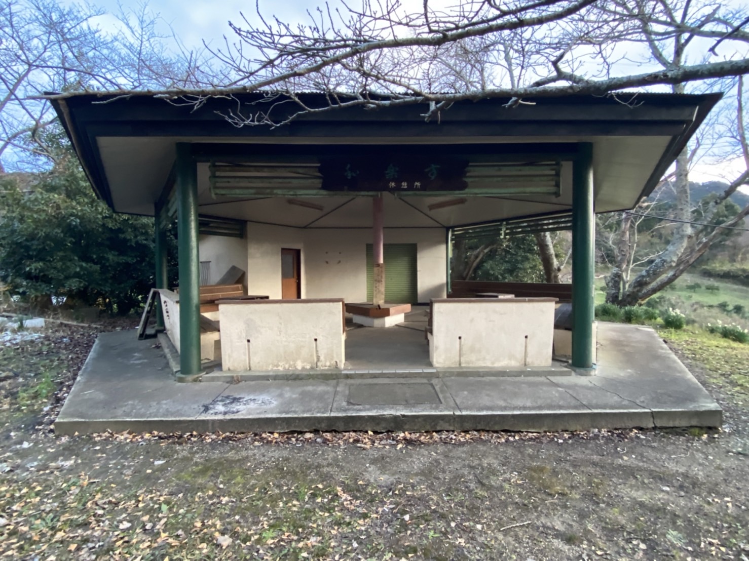 小野妹子の墓からさらに奥へ進むと、六角形の休憩スペースがあります。