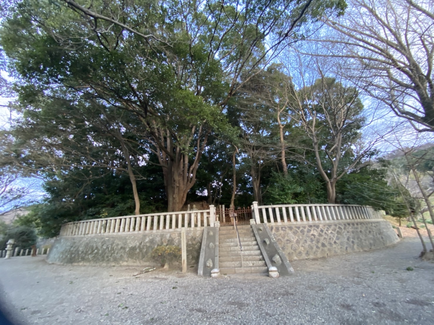 小野妹子のお墓は科長神社の南側、長い石段を登った先にあります。