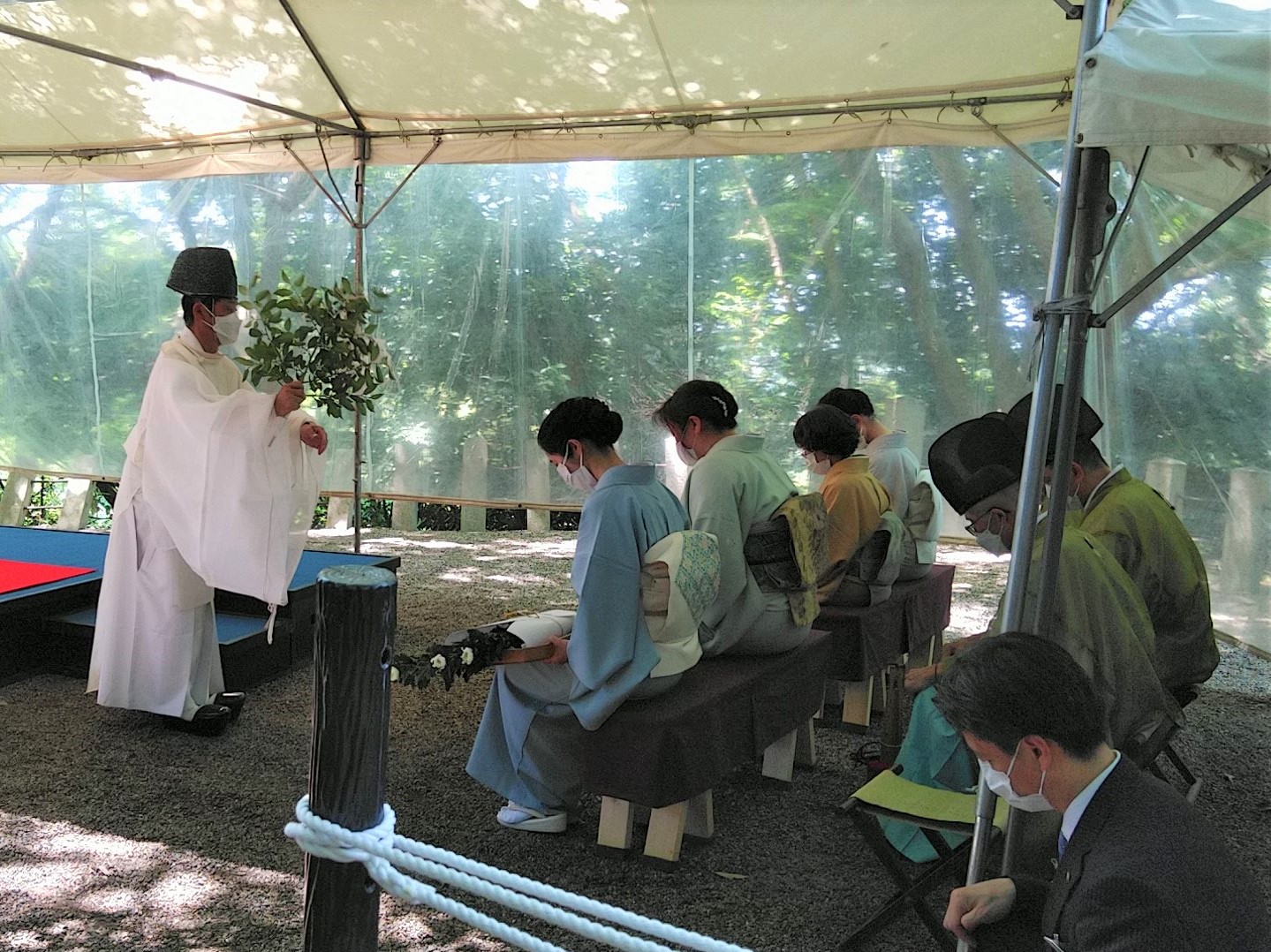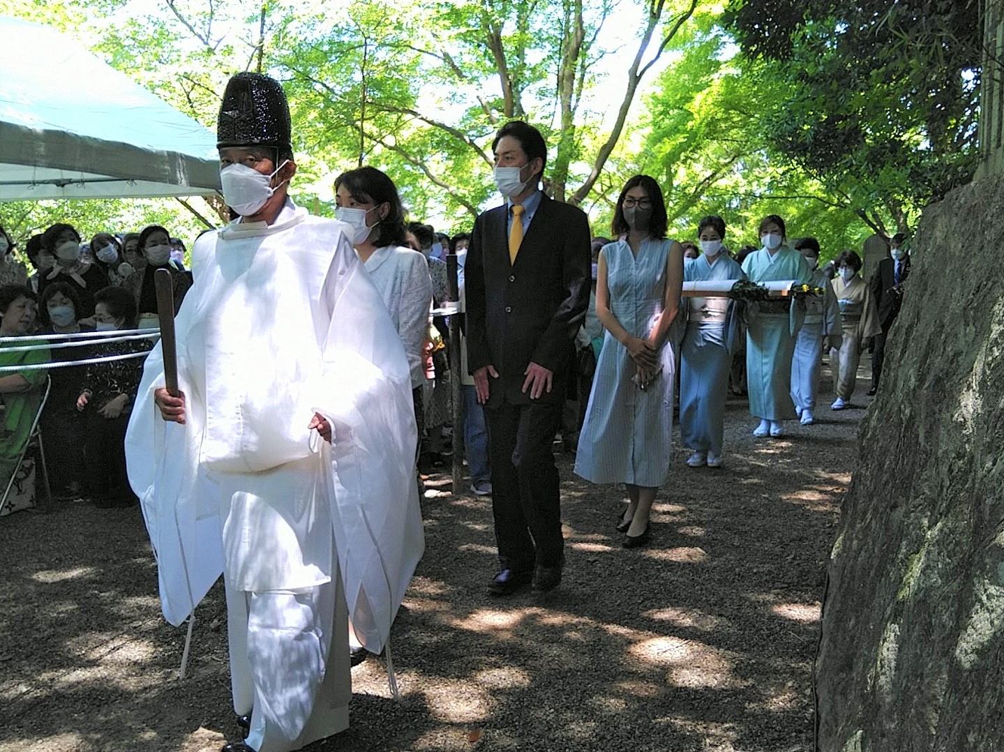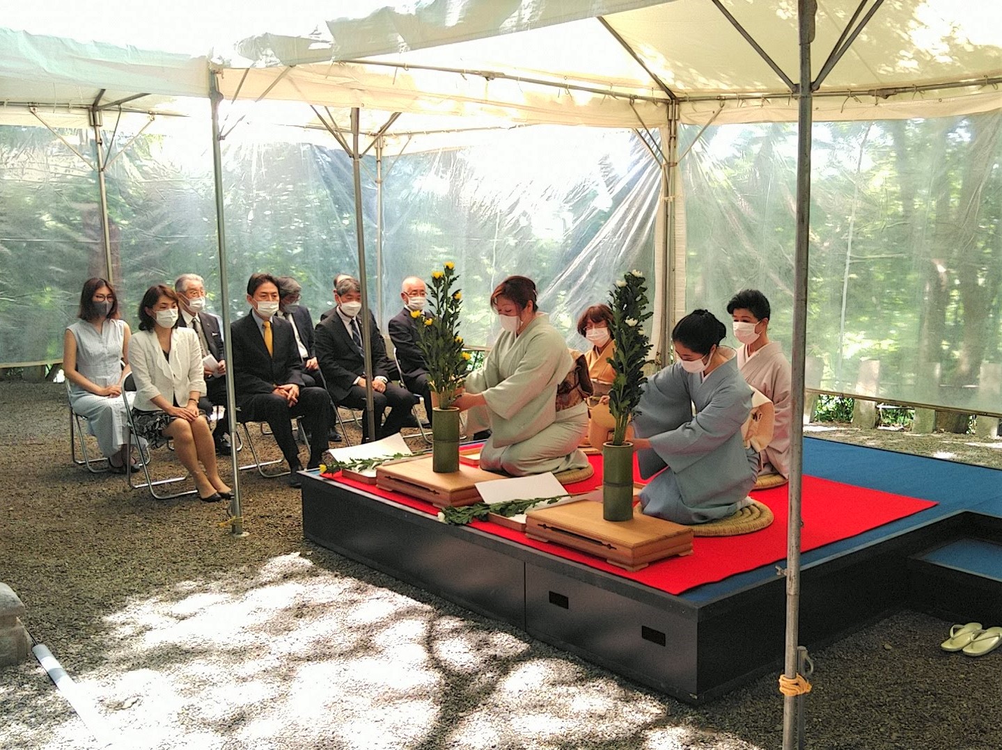 太子町の塚の前では小野妹子の命日である毎年の6月30日に、池坊の方々と科長神社の宮司により道祖・小野妹子墓前祭が執り行われています。