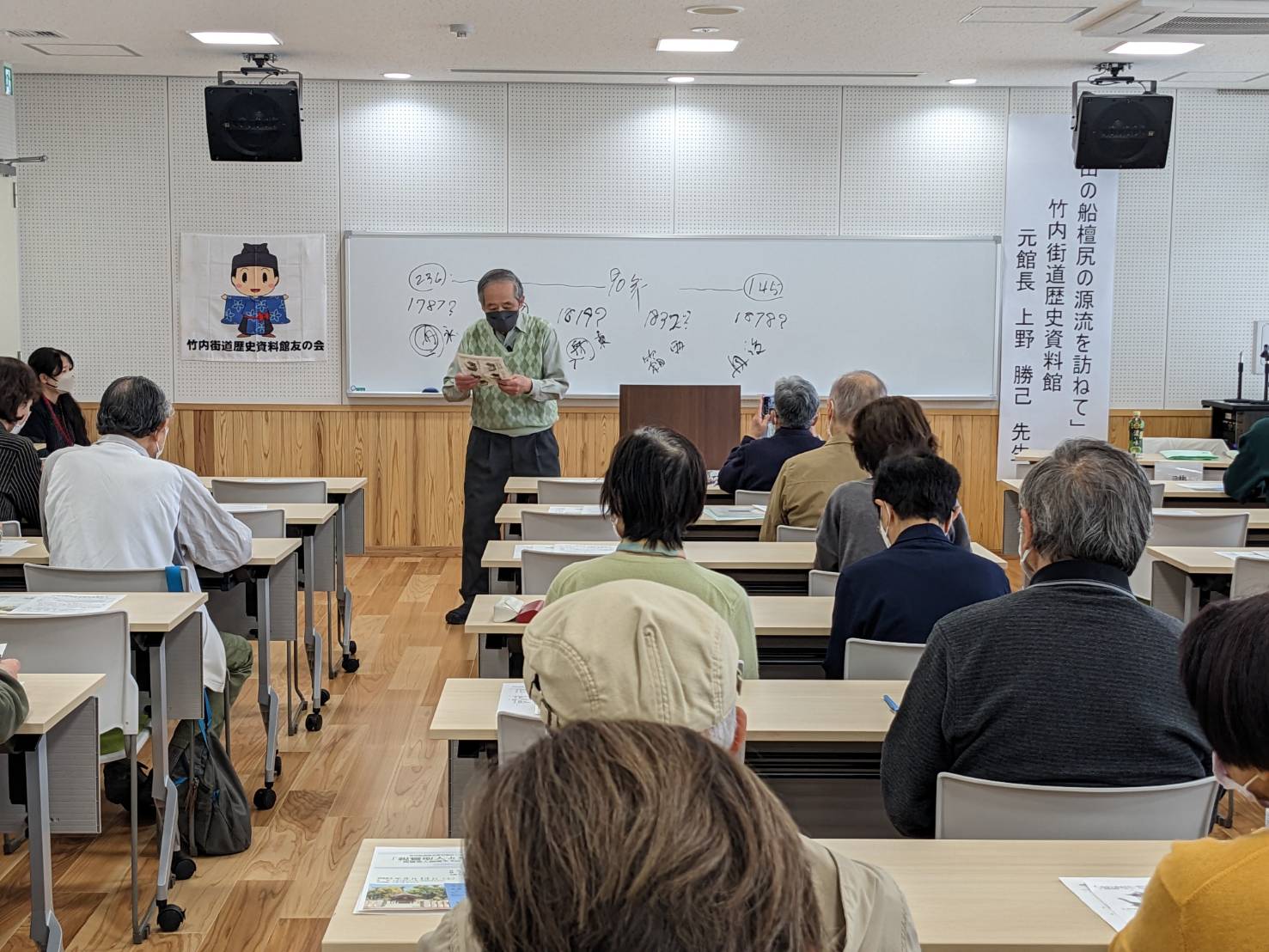 竹内街道歴史資料館友の会主催の歴史講座は、多数の講師をお招きして年に数回開かれています。
