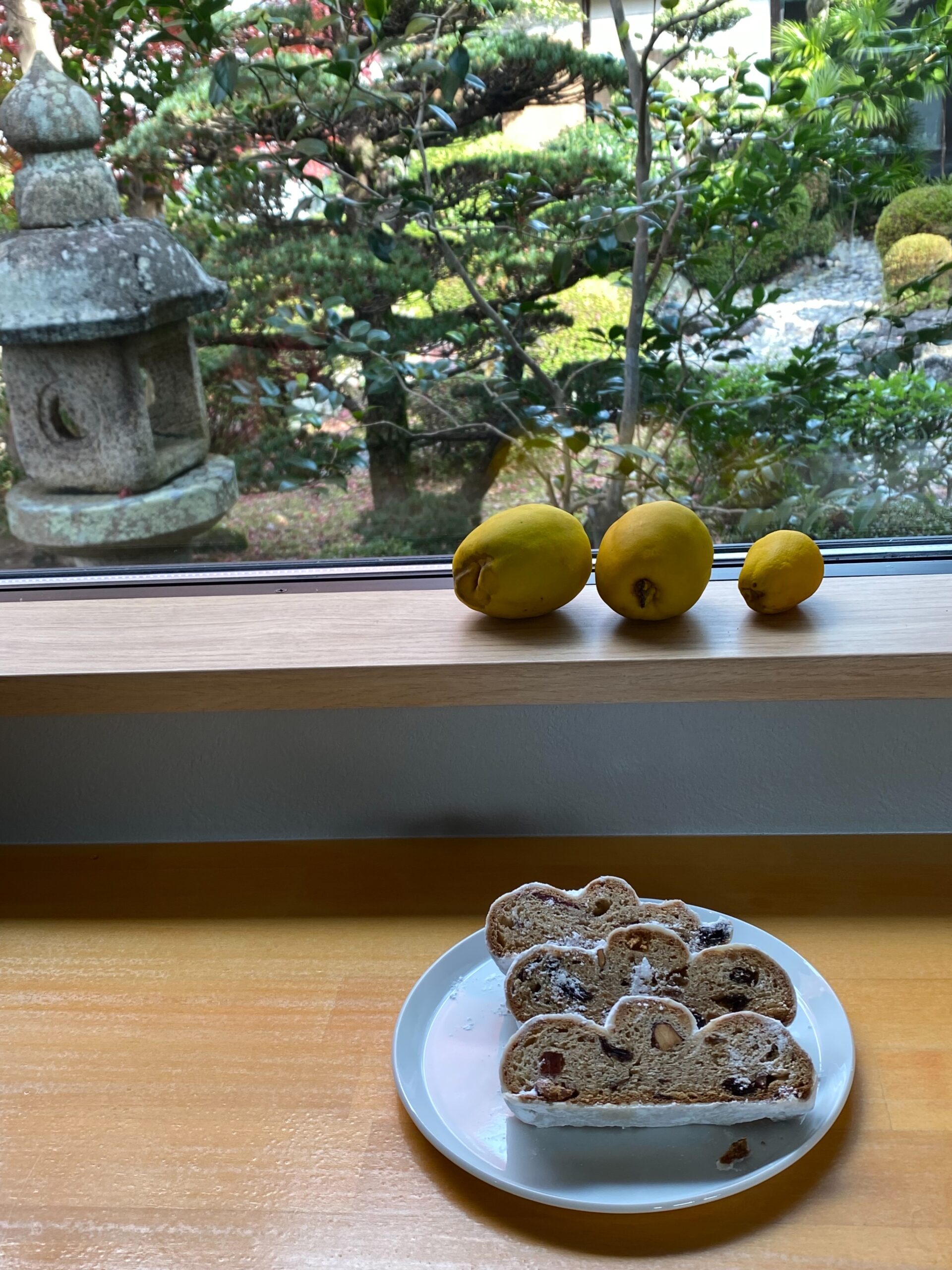 今回はカウンター席から庭の景色を楽しみながら、お菓子をいただきました。