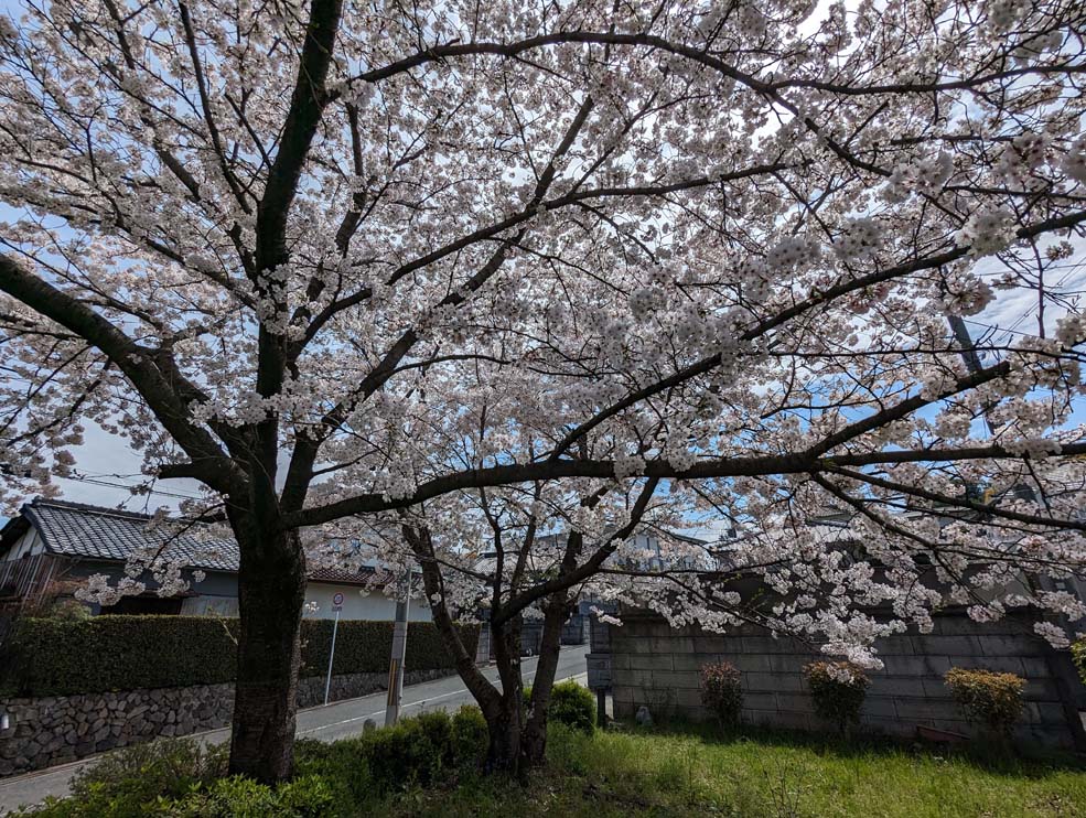 歴史のある道を歩きながら、ふと現れるこの桜に出会うと、「春がきたな」と感じさせてくれます。