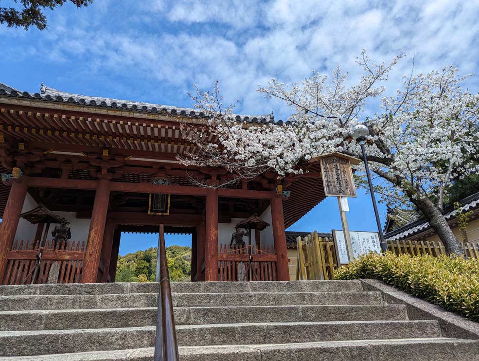 叡福寺といえば、聖徳太子のお墓があることで知られる由緒あるお寺。春になると、南大門のあたりに咲く桜が、歴史ある建物ととけあって、何ともいえない風情を見せてくれます。
