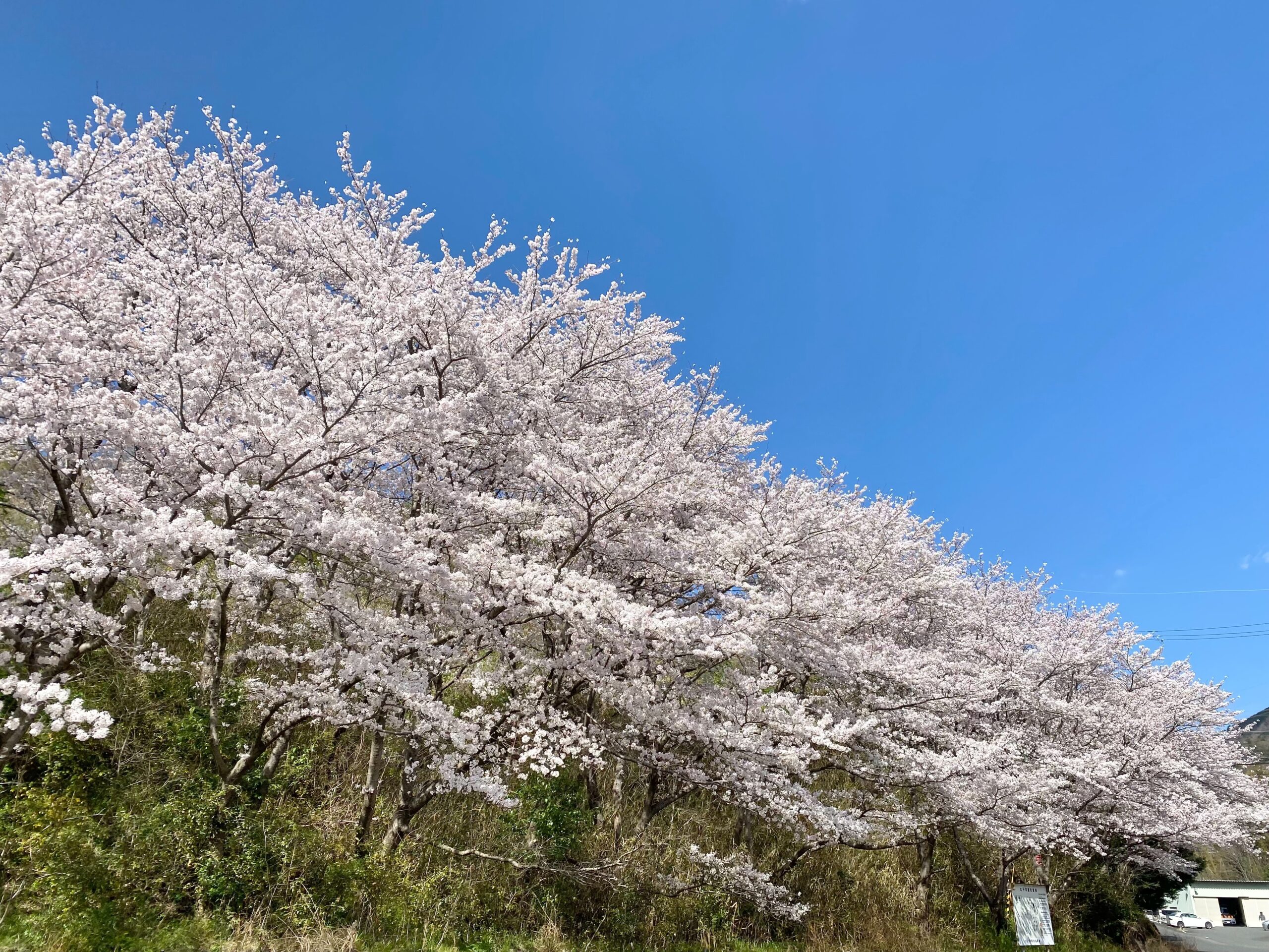 太子温泉と、その敷地内にあるバイク神社は、町内でもとくに人気の桜スポット。駐車場や建物のまわりにたくさんの桜が植えられていて、満開のころにはまるで桜のトンネルのようになります。