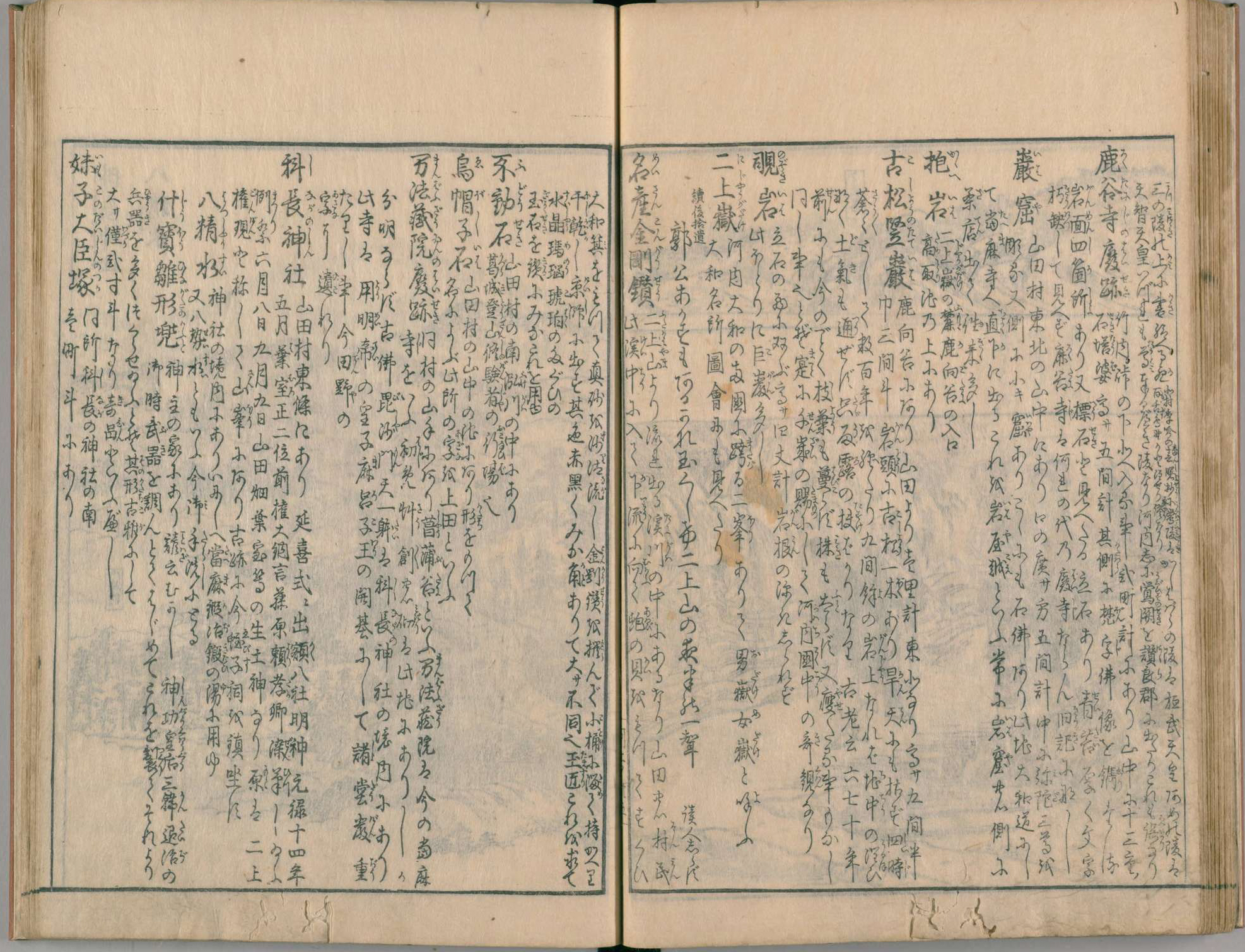 江戸時代に発行された観光ガイドブック「河内名所図会」の第6巻には、すでに岩屋が観光地として紹介されています。