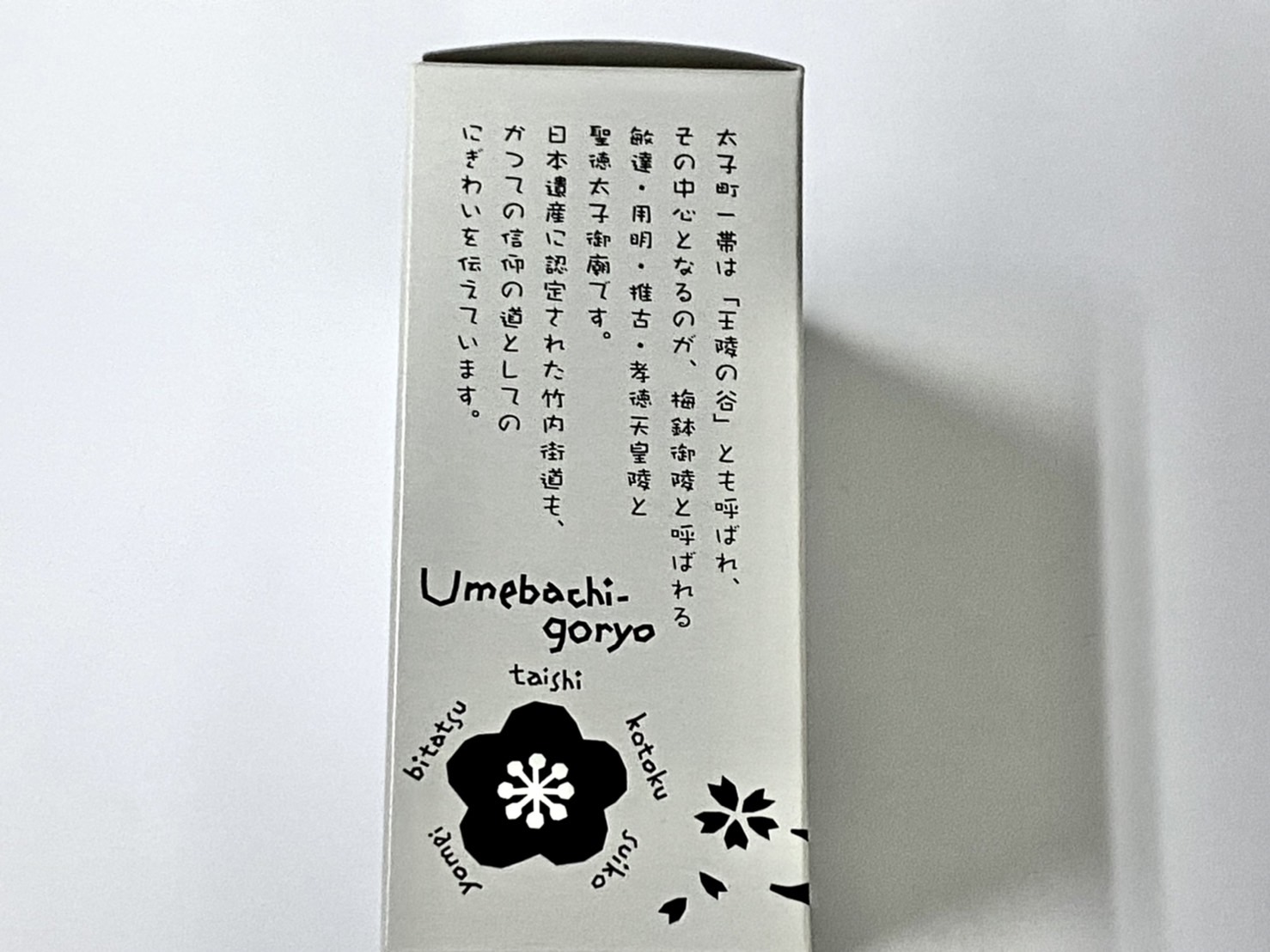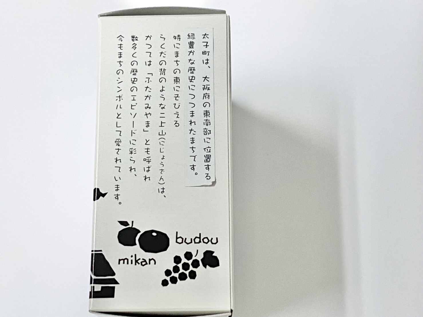 絵柄は3種類あり、大阪府太子町の名所「二上山・竹内街道」「叡福寺」「たいしくん」の焼き印が捺されています。