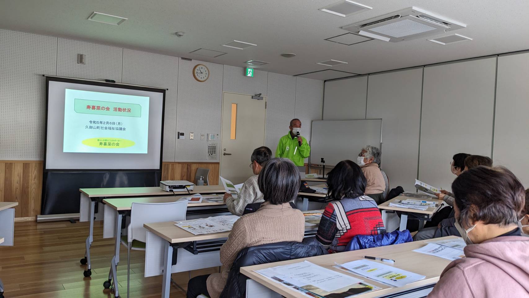 2月6日(月)京都府久世郡久御山町から、地域で住民主体の活動の取り組みを学んでいる住民さん、行政・社協の職員さんが寿喜菜の会の視察研修に来られました。