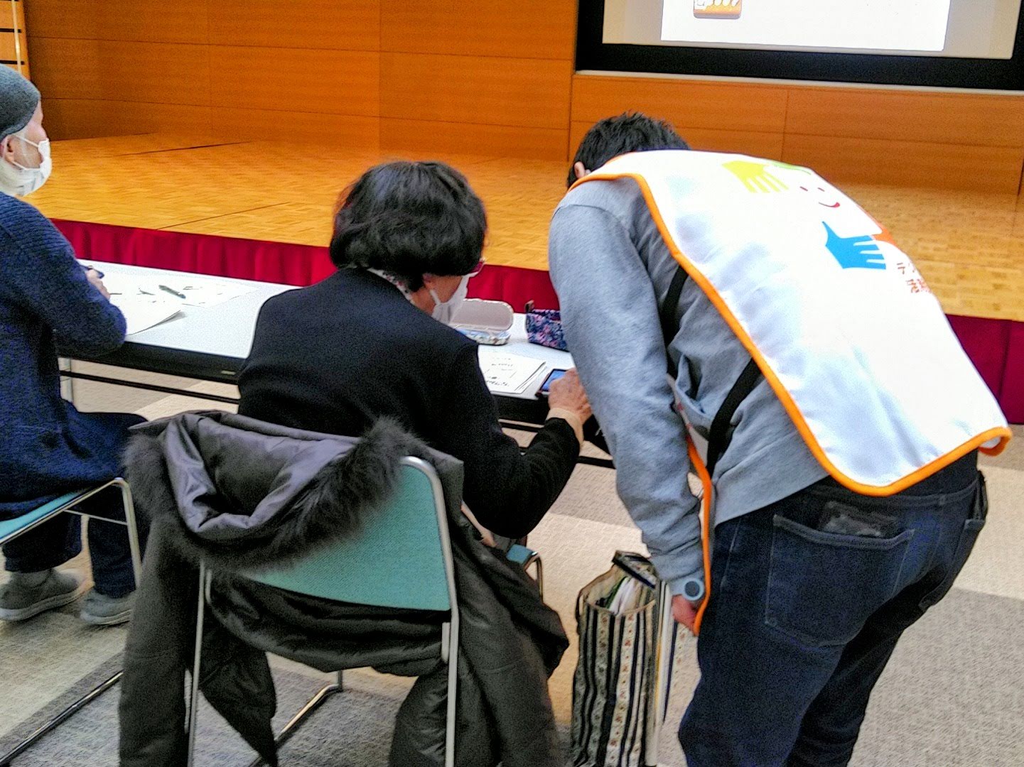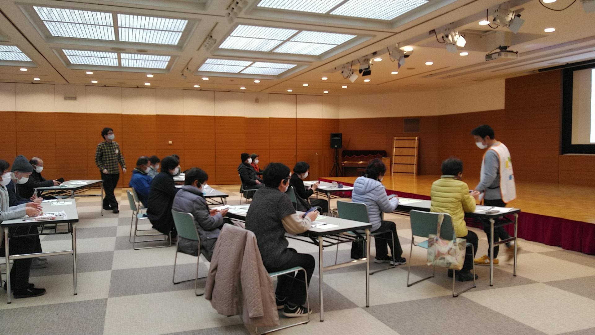 デジタル活用支援推進事業の一環として高齢者向けスマホ講座が太子町役場の万葉ホールで開かれ、太子町内在住の高齢者10名以上が参加しスマホの使い方を学んでいました。