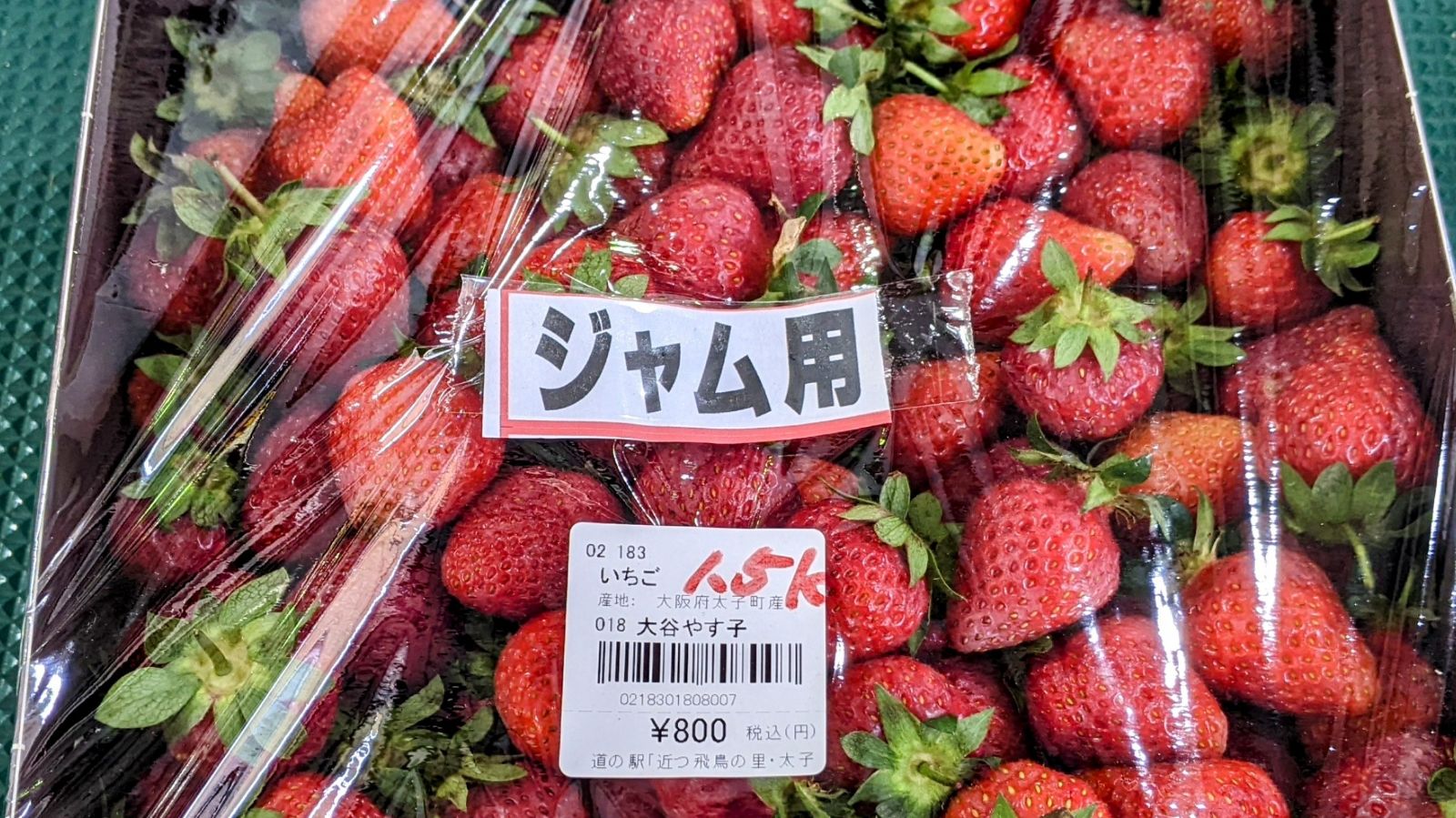 本日は道の駅で販売されていたジャム用いちごを使って、レンジで簡単!果肉ゴロゴロいちごジャムを作っていきます。
