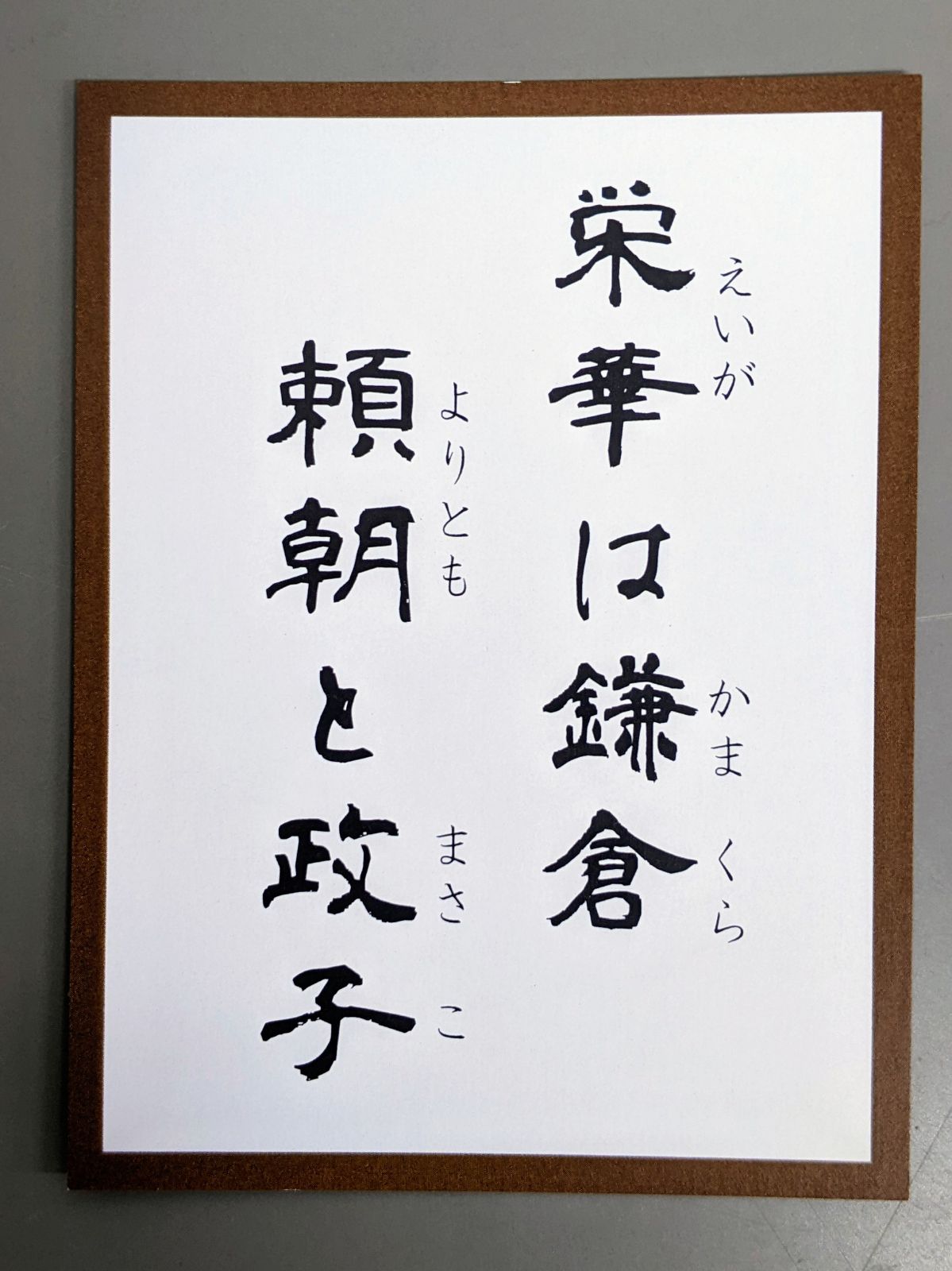 「切り絵でめぐる太子町郷土史かるた」の「え」の読み札は、「栄華(えいが)は鎌倉 頼朝と政子」です。