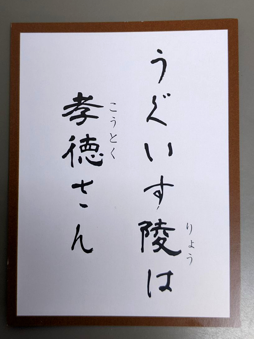 本日は「い」に続き、「う」のかるたである「孝徳天皇陵」の句を解説します。