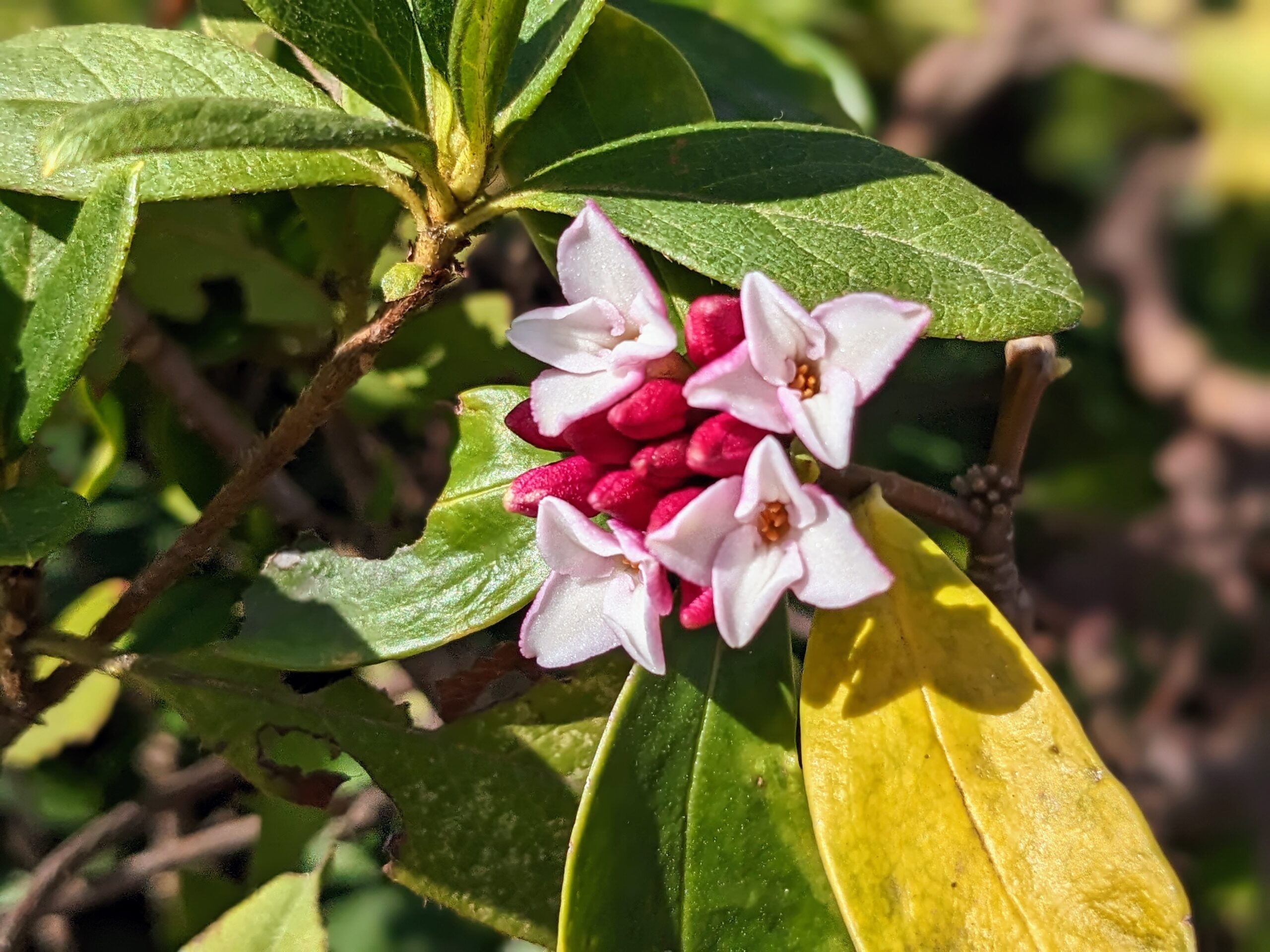 沈丁花という名前の由来は、香木(こうぼく)の「沈香(じんこう)」と「丁子(ちょうじ)」という樹木を合わせたような香りであることから、名前がつきました。