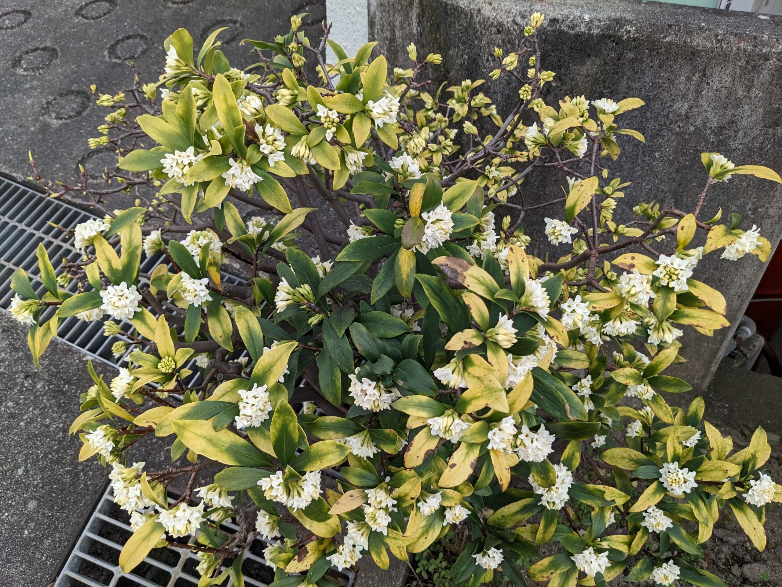 春を知らせる香りから、俳句の季語や歌の中でも活躍をする沈丁花は現在開花の見頃を迎えています。
