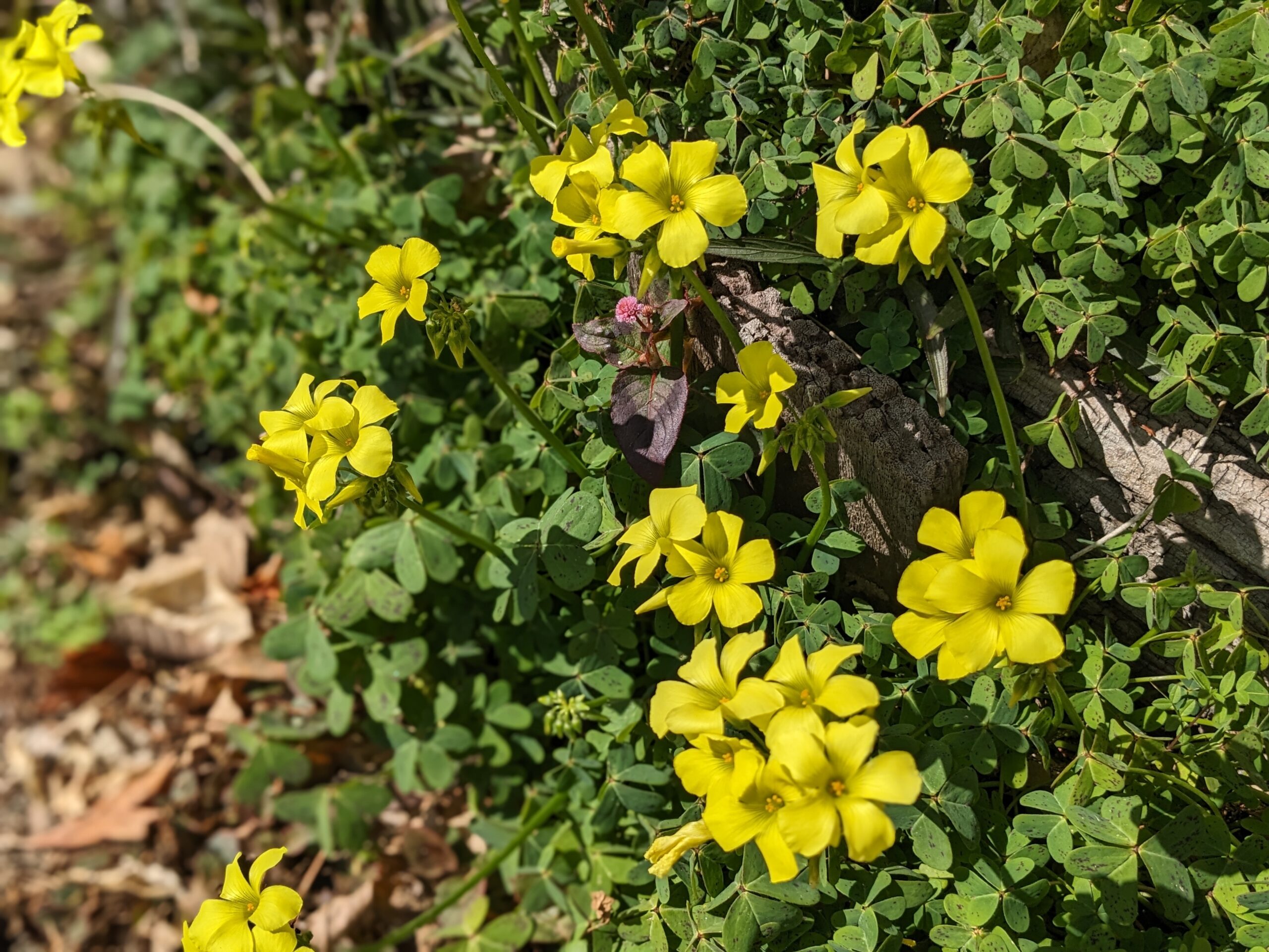 「オオキバナカタバミ」は、クローバーのような葉っぱと可愛らしい小さなな花が特徴です。